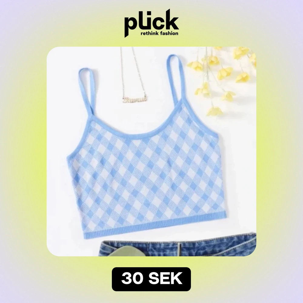 Blå/ vit rutig topp från Shein. Med smala axelband & har en croppad passform. Perfekt för sommaren eller tillsammans med en jacka på hösten. Toppen är i ett mjukt material. Oanvänd utan prislapp. Storlek S (36). Köpt för 70kr, säljs för 30kr 🦋