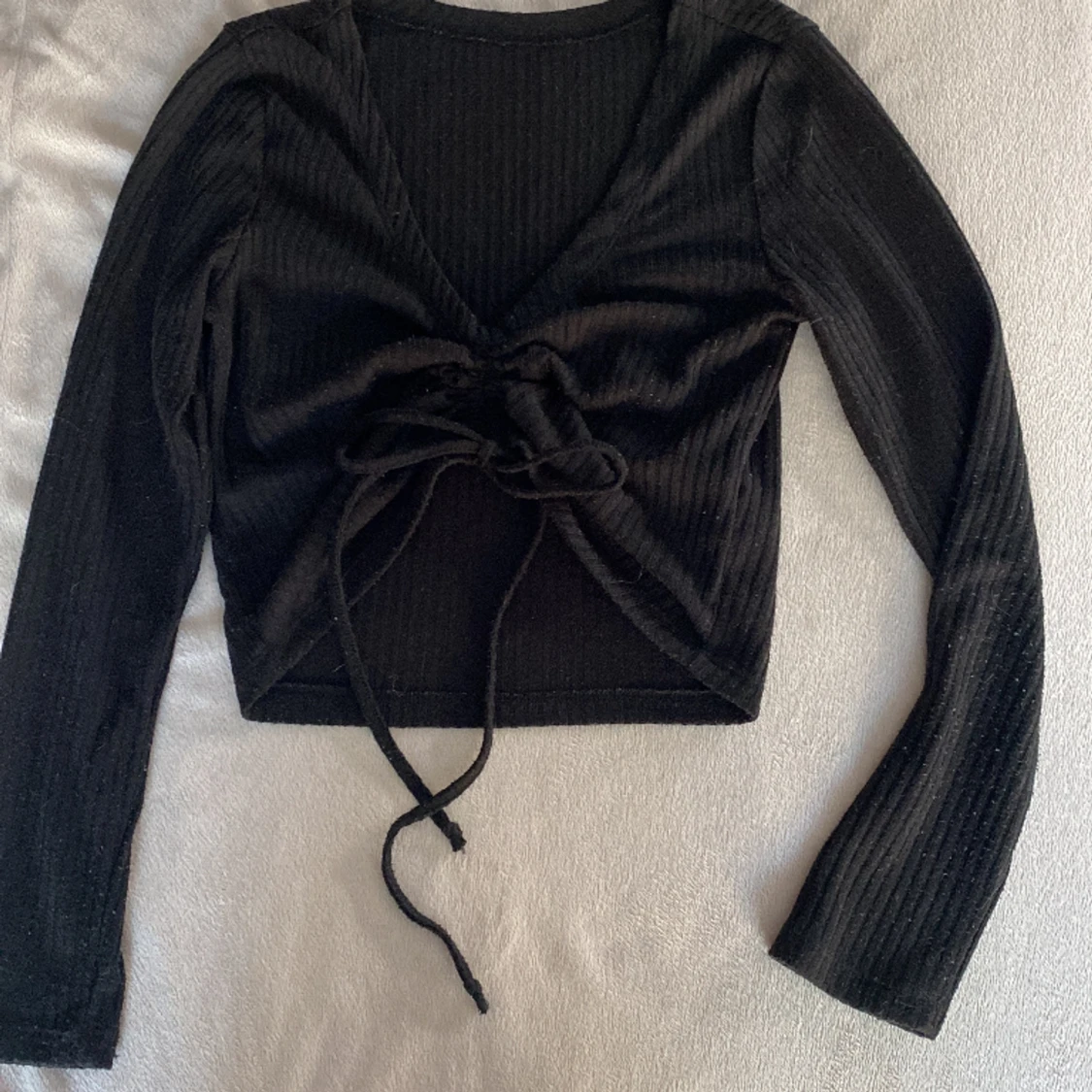 Svart topp med dragsko så den går att ha både som magtröja och ”vanlig” den är ribbad och jätte fin💞 perfekt både till vardags eller kanske konserter i sommar🙌🏻🙌🏻 den är nopprig därav priset men har använt noppermaskin och försöker ta bort innan frakt💞