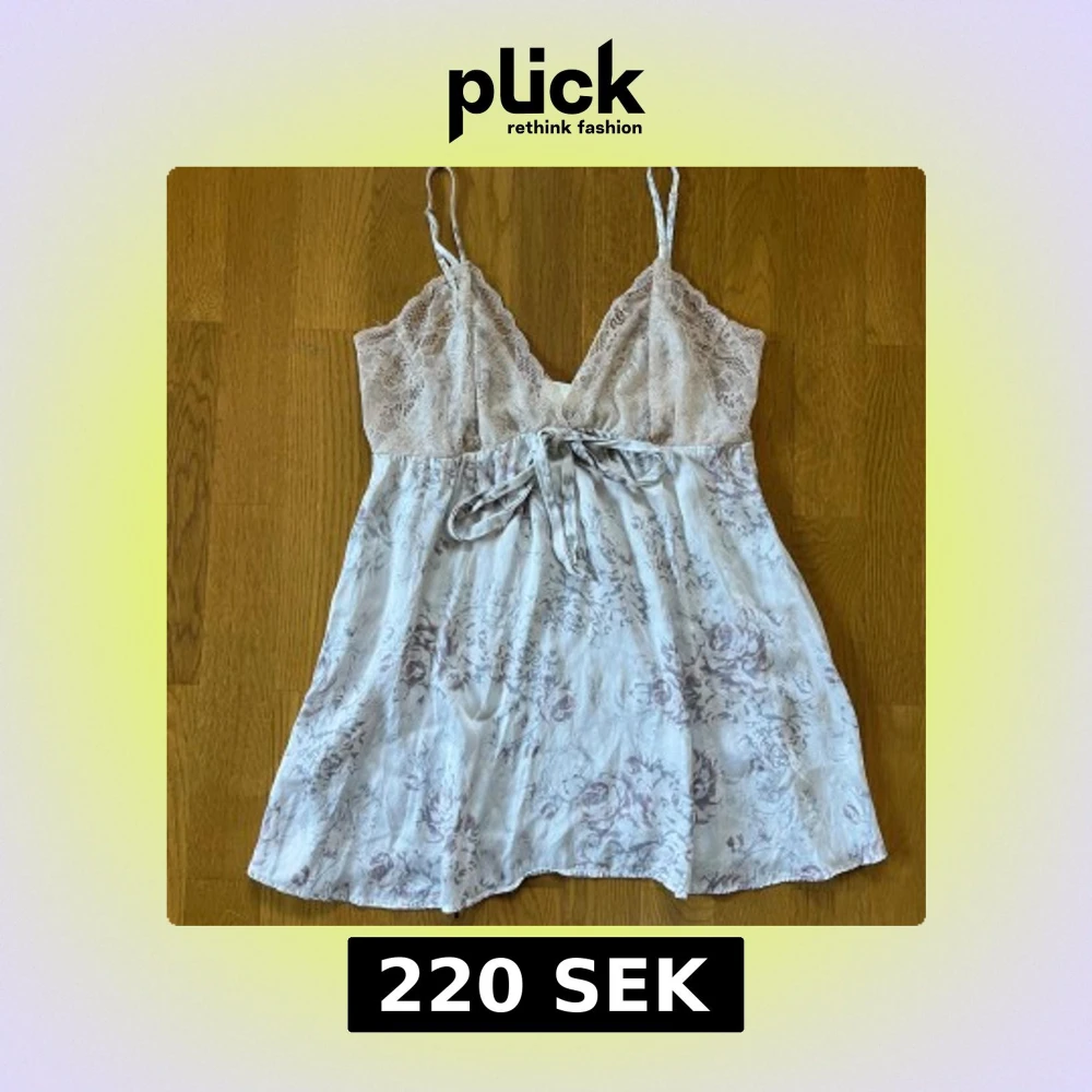 Supersöt babydoll topp med tunna axelband, spets upptill och blommigt mönster i ljusa toner. Toppen har v-ringning och ett knytband under bysten. Materialet är mjukt och svalt, perfekt för varma dagar.