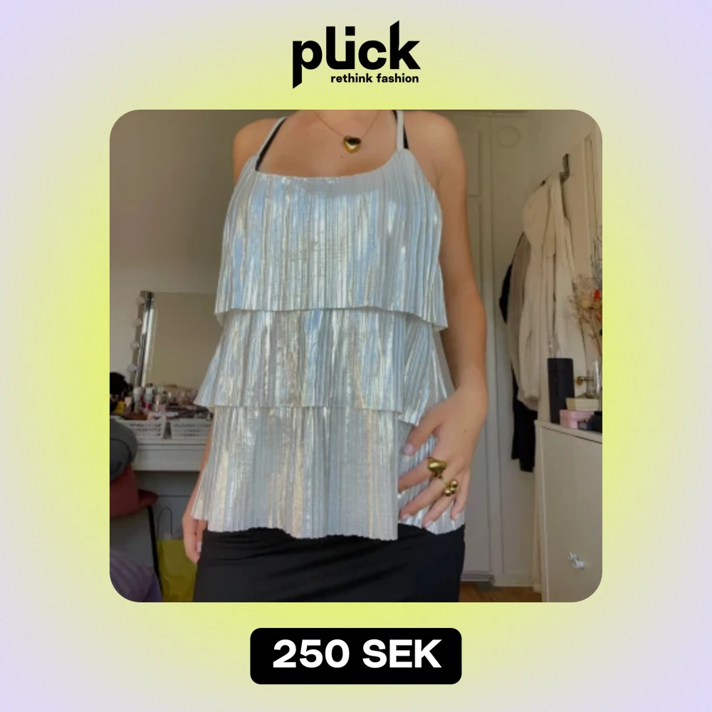 Super cool och unik silver topp med volanger! Perfekt inför nyår eller fest. Storleken är M men passar mig med XS-S. Nyskick. klicka gärna på ’köp nu’😇