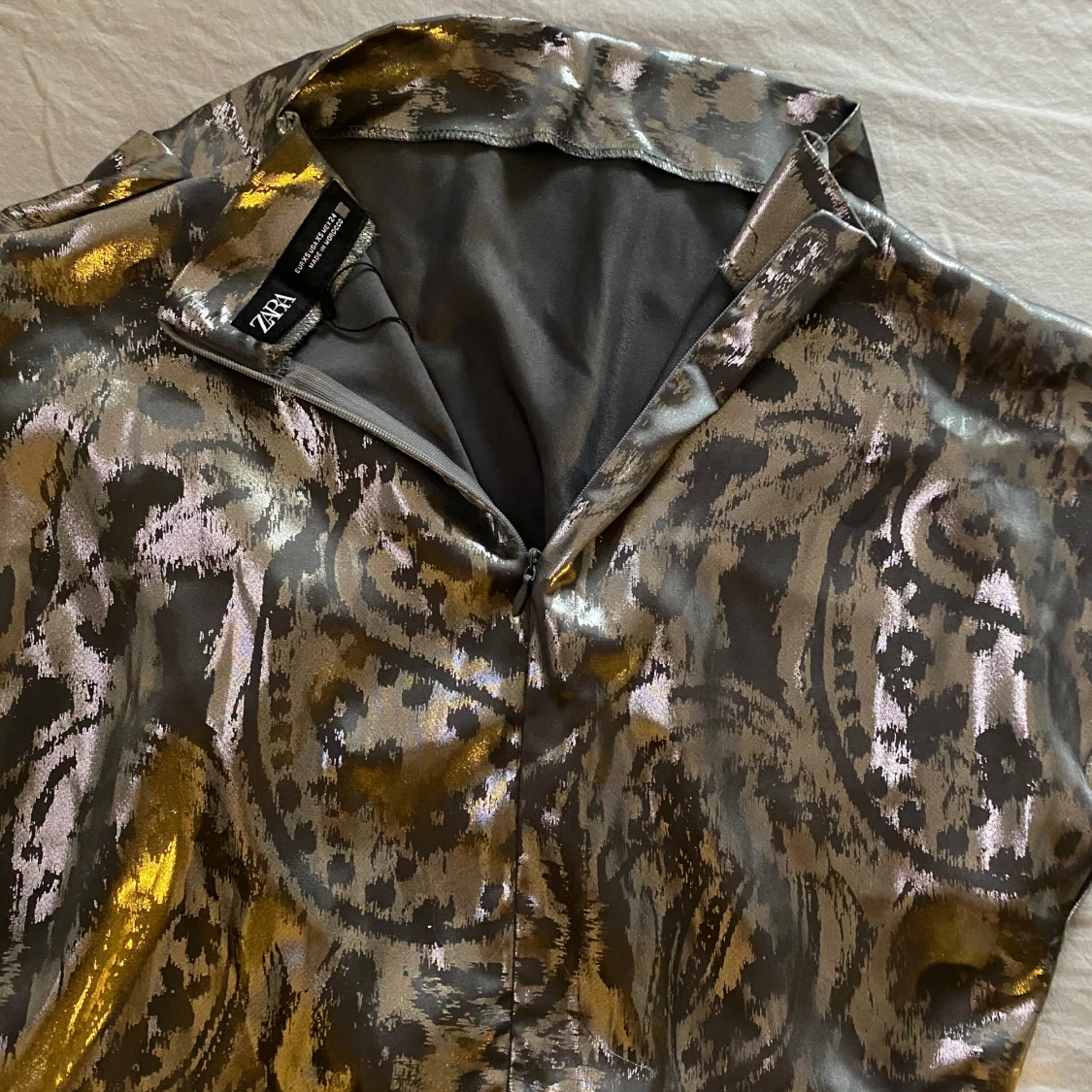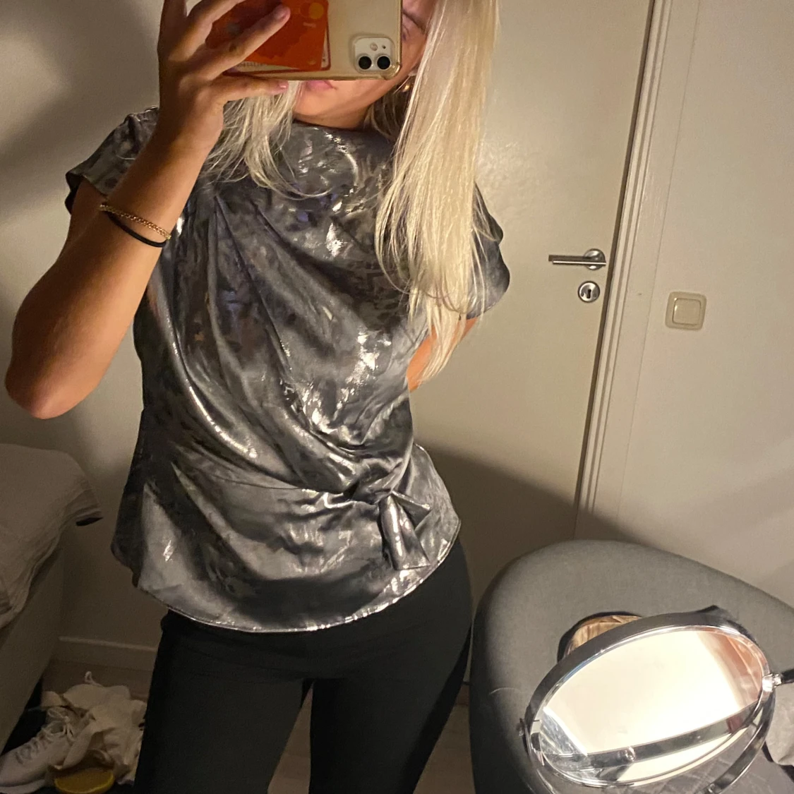 Snygg silver topp från Zara. Toppen har korta ärmar och en dragkedja i ryggen. Perfekt för en festlig kväll!🪩✨