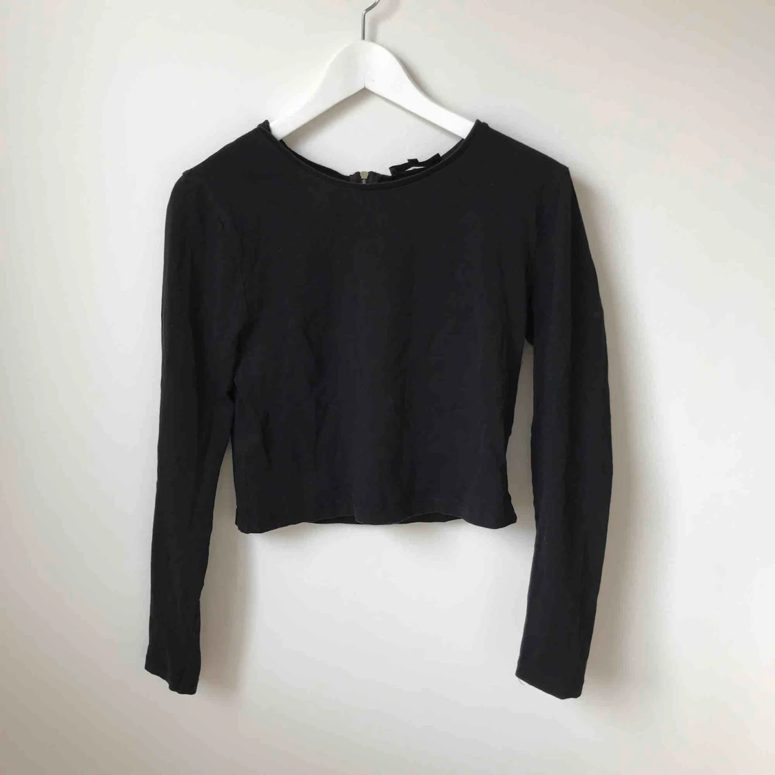 Svart långärmad, kort topp med silverdragkedja i ryggen. Köparen står för fraktkostnad enligt postens portotabell.