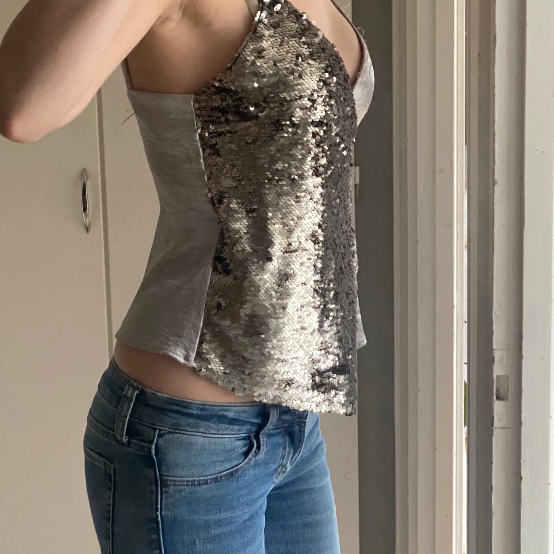 Silver paljettopp från Mango XS