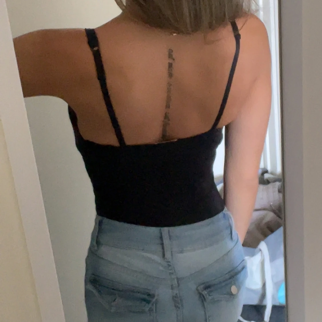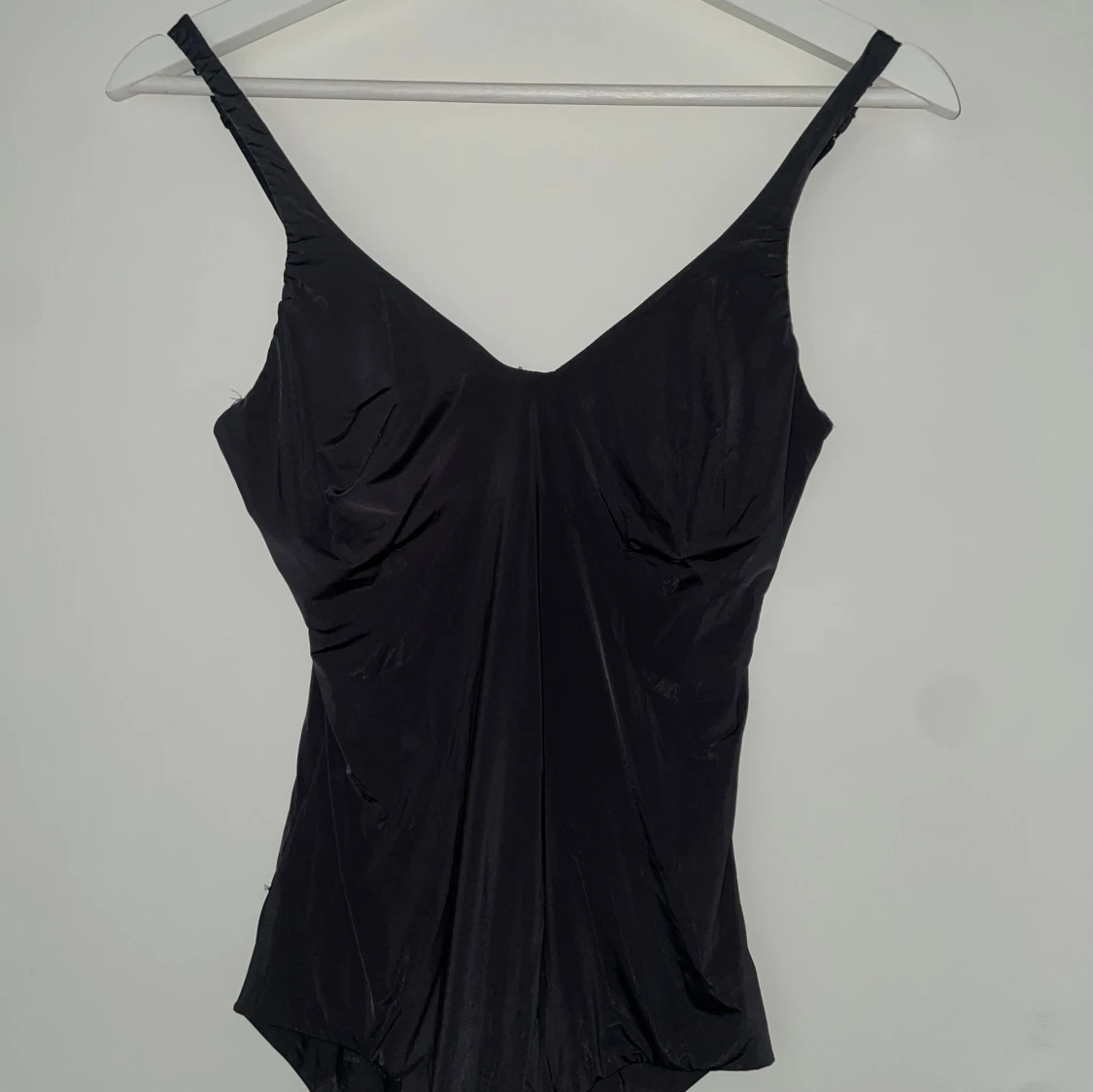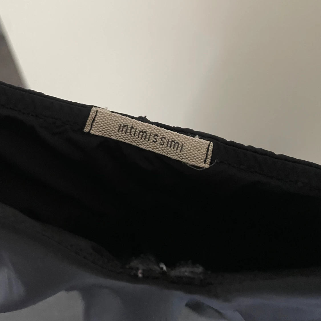 Supersnygg svart body från Intimissimi med v-ringad front och smala axelband. Sitter tight och framhäver formerna. Materialet är mjukt och lent, syns inte under kläder.