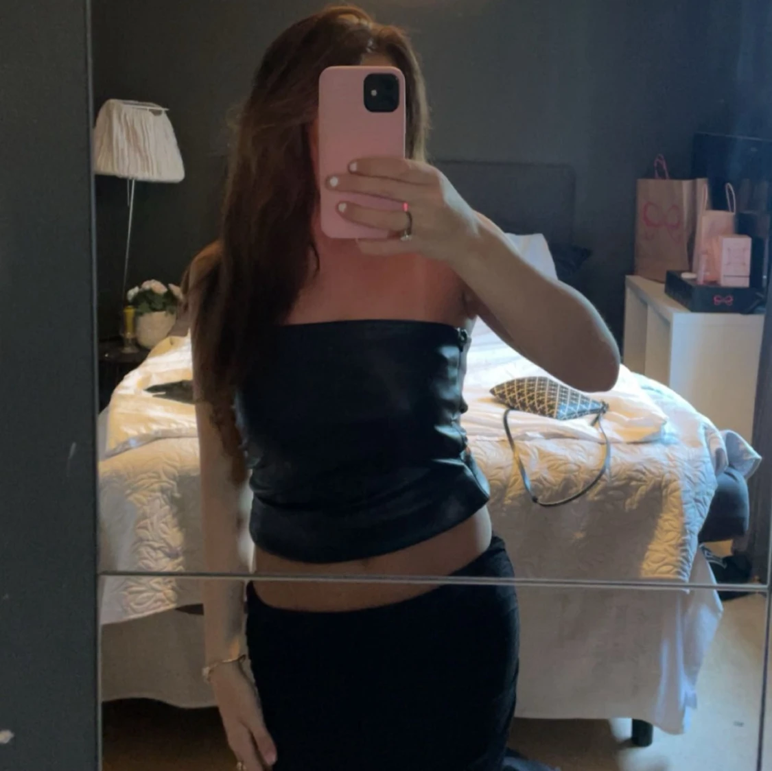 Säljer denna super fina skinn topp från SHEIN