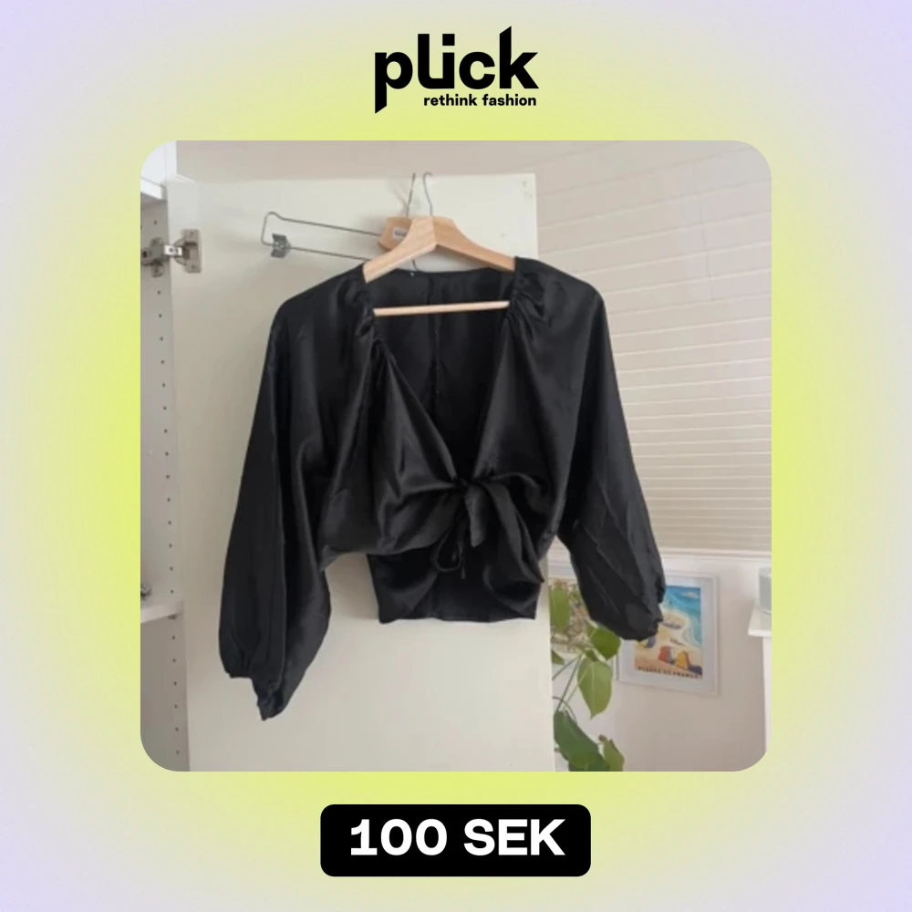 Svart topp blus silkesblus knytblus