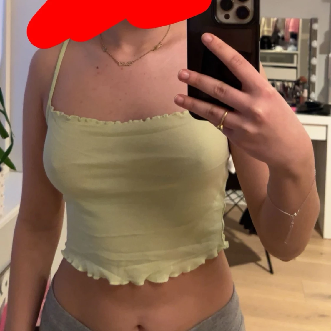 Jättegulligt linne från hm med små detaljer runtomkring. Jättefin limegrön färg och sitter super skönt på.