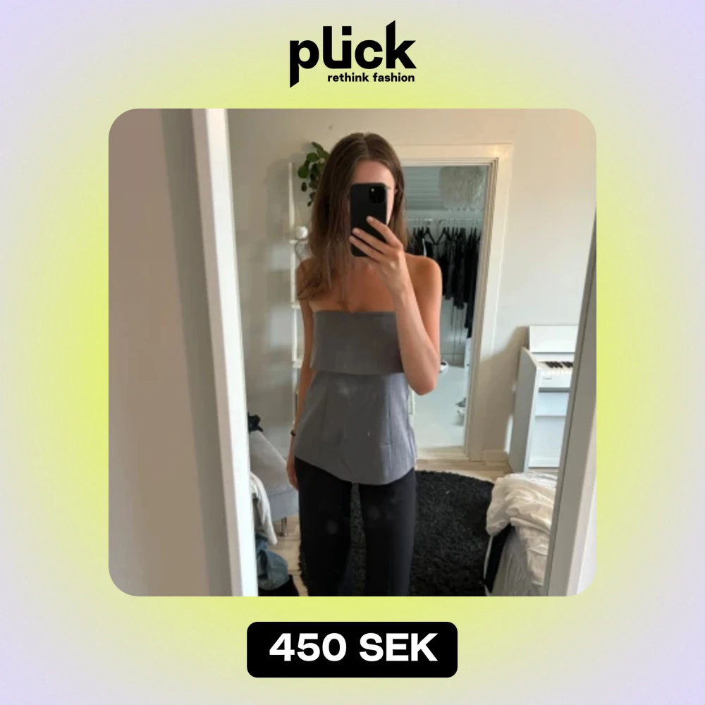 Grå bandau topp i storlek 34. Vikt skräddarsydd med en mjuk känsla. Inre silikon kant runt bröstet och en gömd dragkedja på baksidan. Använt en gång. Normal passform.
