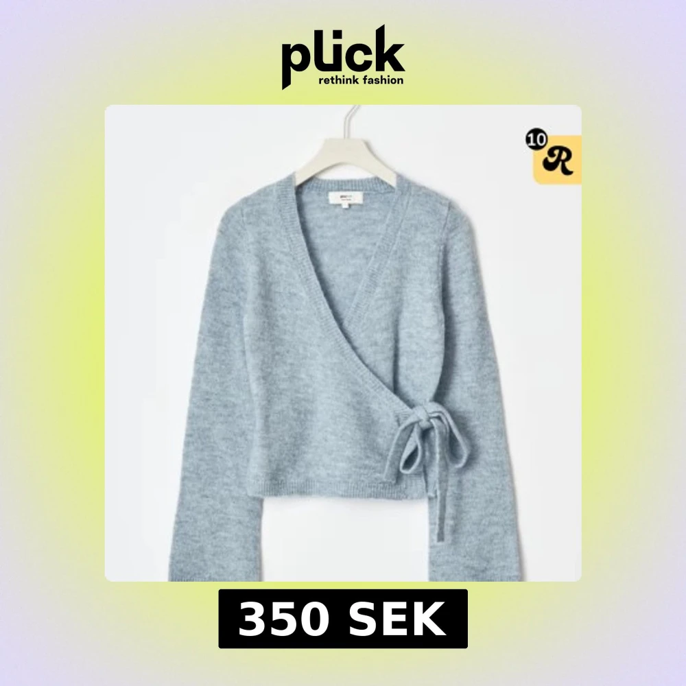 Supermysig ljusblå omlottstickad topp från Monki med v-ringning och knyt i sidan. Croppad modell med långa ärmar och mjukt material som känns skönt mot huden. Perfekt för att ge din outfit en chill vibe.