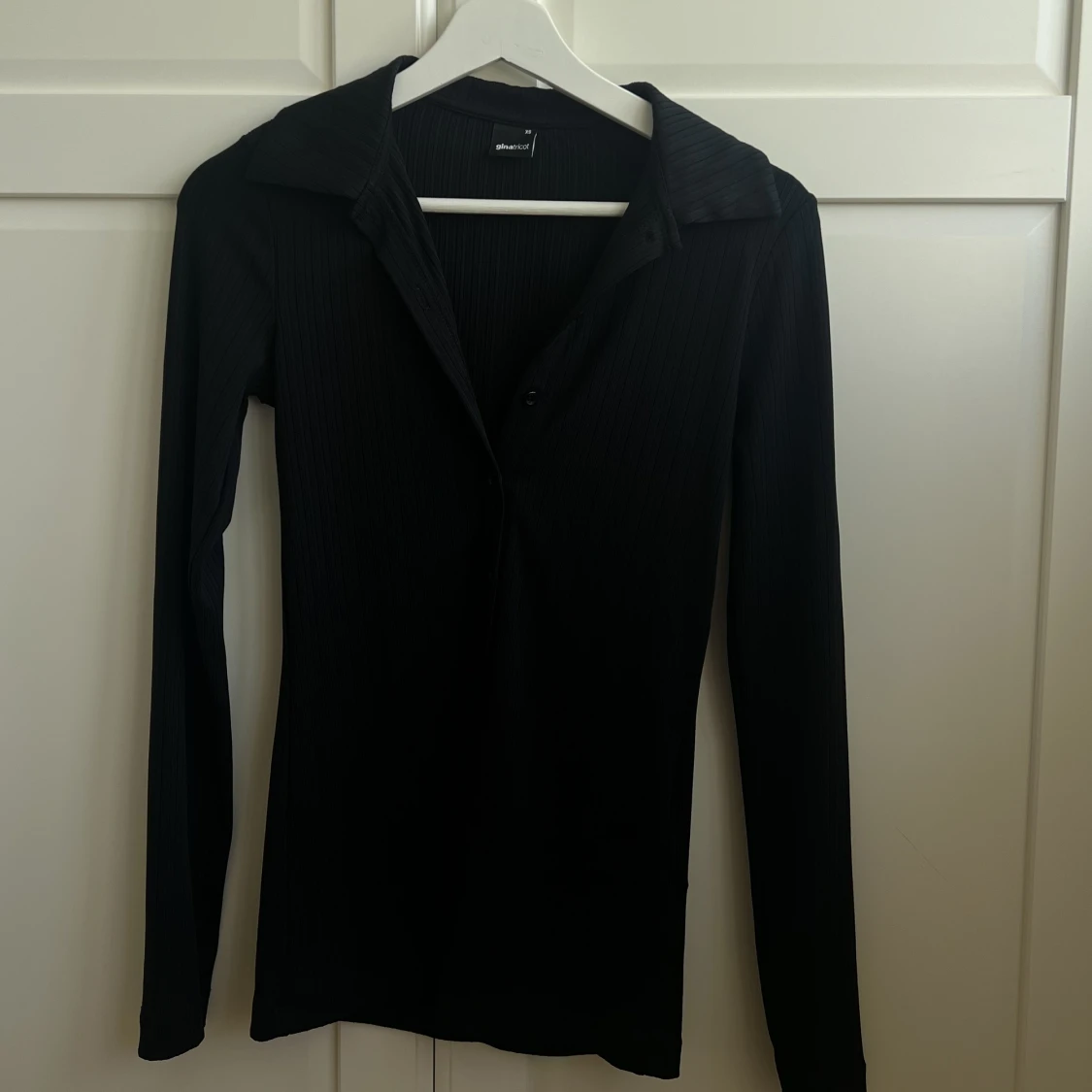 Svart långärmad tröja med knappar i mjukt material. Använd 1 gång. Från Gina Tricot.