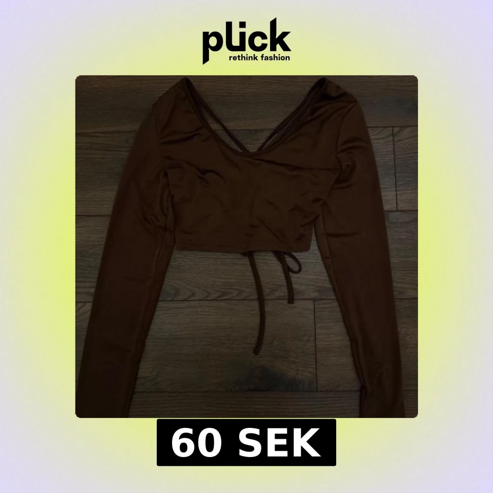 Säljer en brun långärmad croppad topp med djup v-ringning och snygga korsade band i ryggen. Toppen har en cool snörningsdetalj baktill som ger en rynkad effekt och extra edge. Perfekt för dig som gillar trendiga och unika plagg.