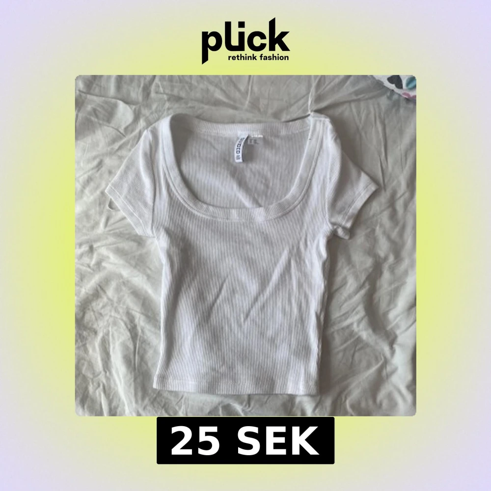 Superfräsch vit croppad topp från H&M Divided med ribbad struktur. Toppen har korta ärmar och en djup, fyrkantig urringning som ger en snygg och trendig look. Katt finns i hemmet!