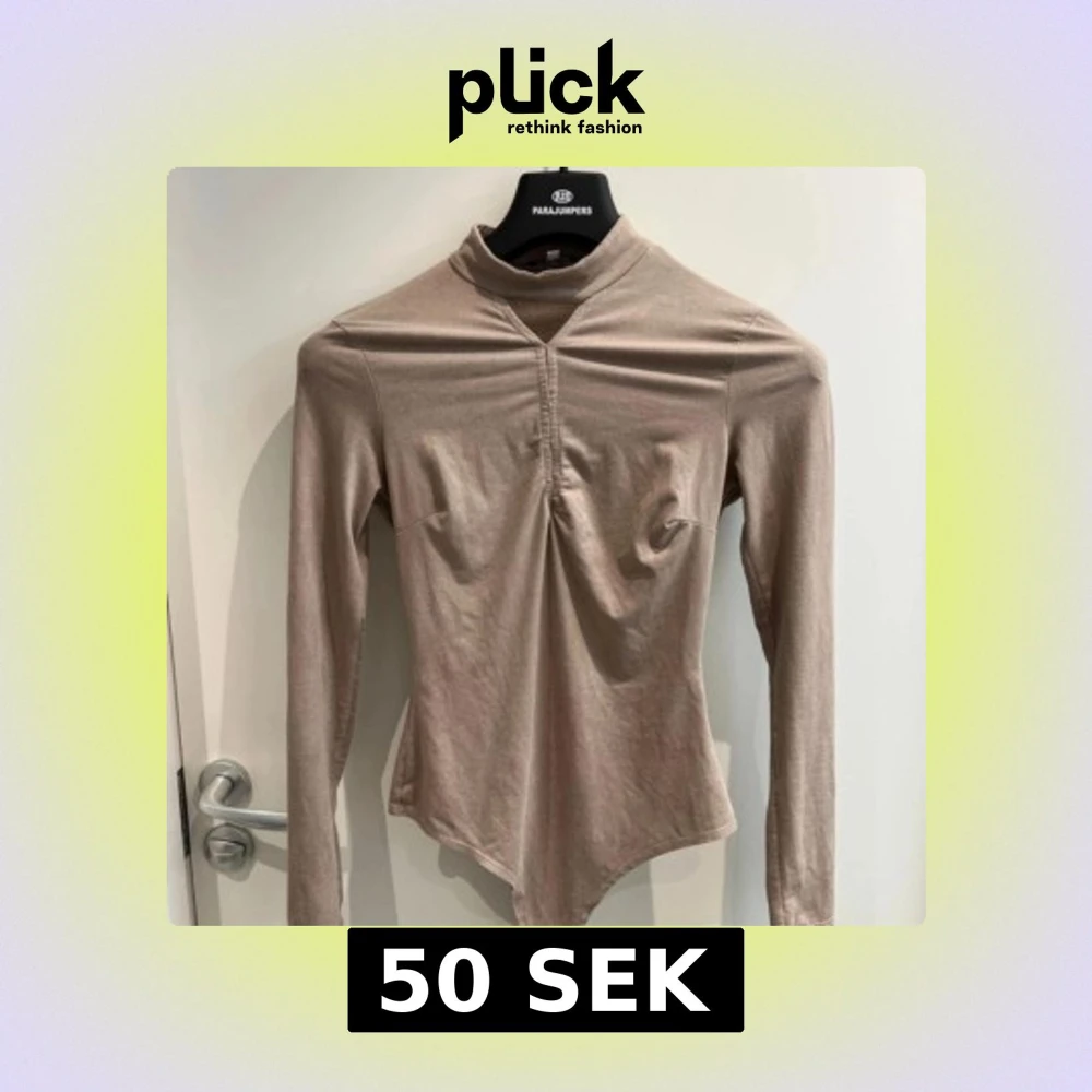 Säljer en beige långärmad bodysuit från NLY One. Toppen har hög hals med liten v-ringning framtill och är figurnära i modellen. Tillverkad i mjukt stretchigt material som sitter snyggt på kroppen. Perfekt att styla med jeans eller kjol.