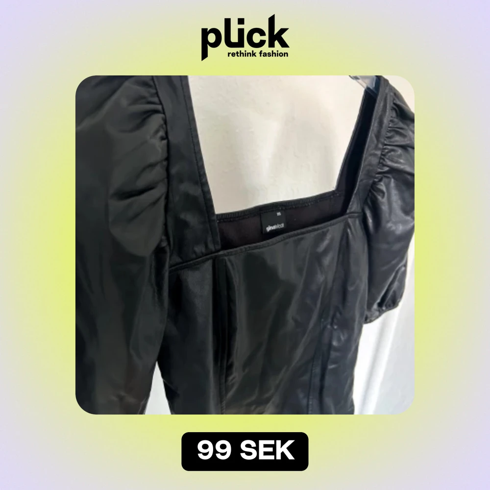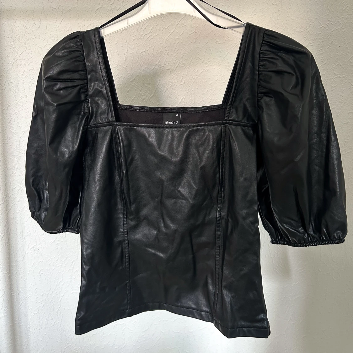 Den perfekta fest toppen! Svart skinn topp, aldrig använd. Den är lite skrynklig på bilden då den har legat ihopvikt i garderoben. Sitter väldigt smickrande på!