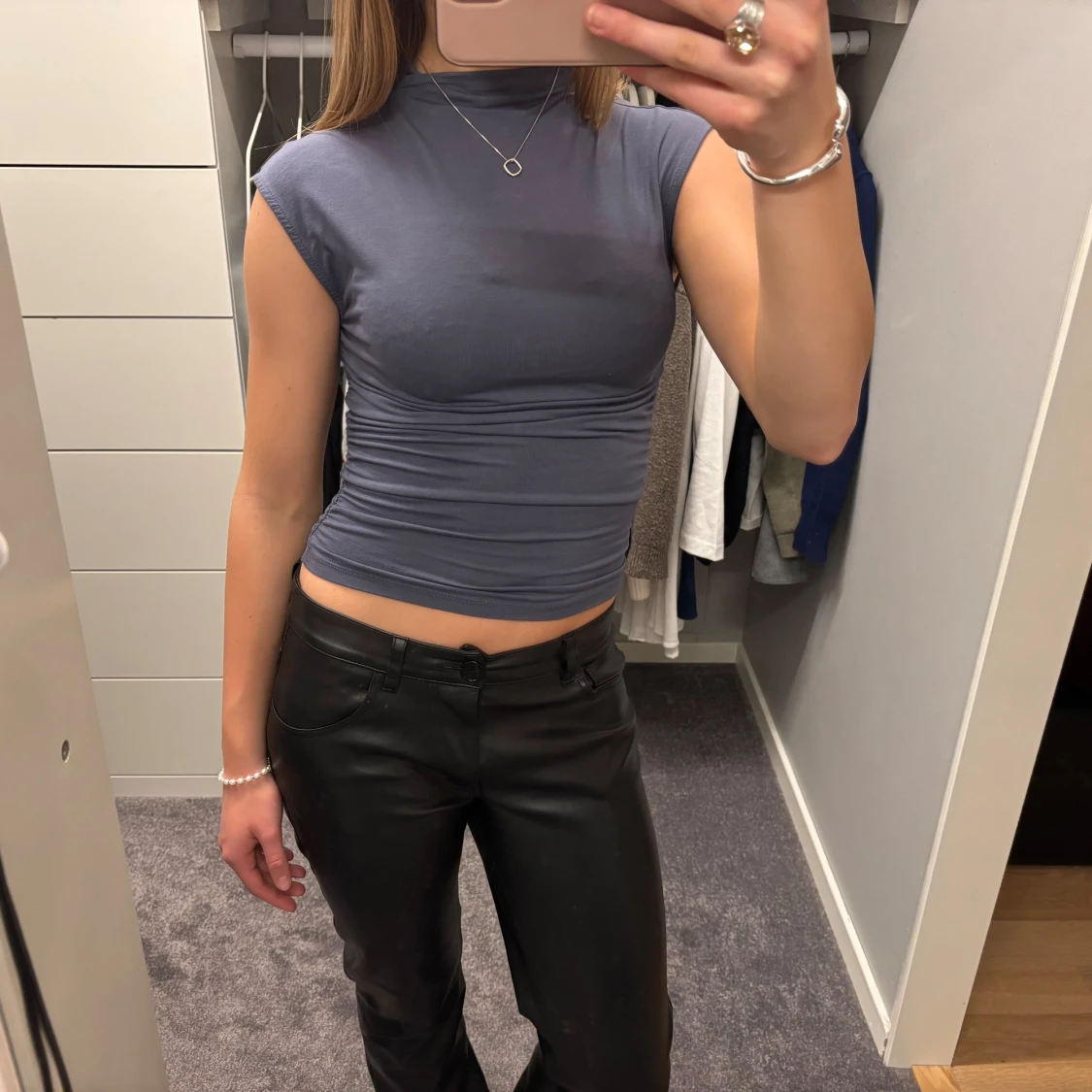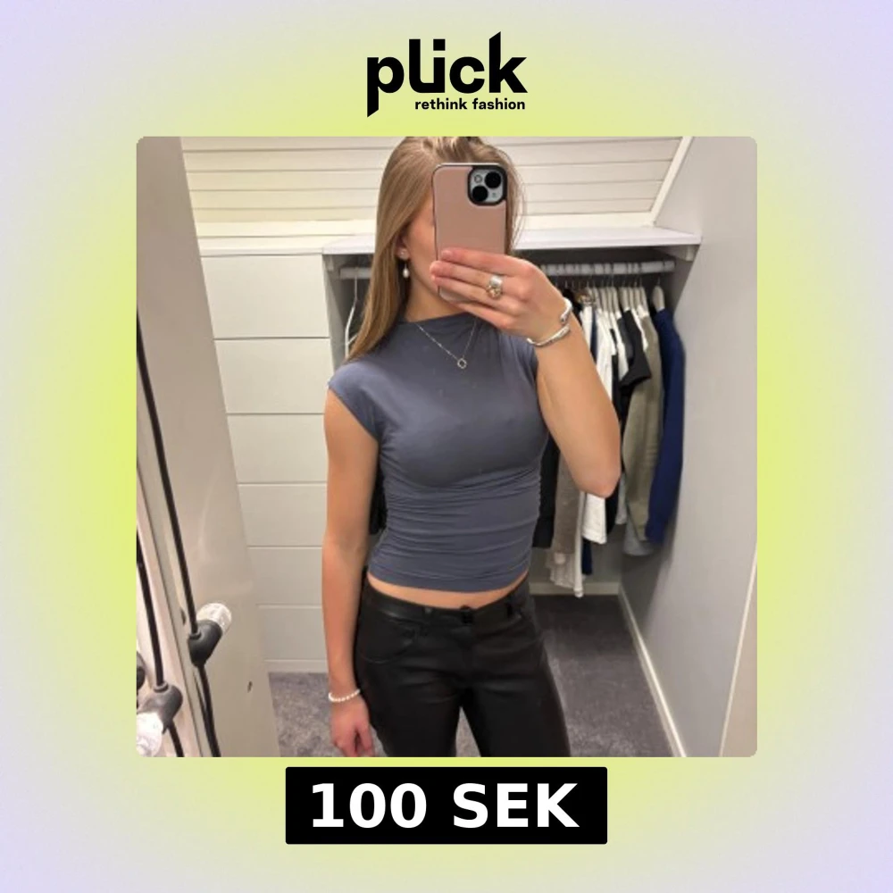 Snygg grå/blå tight topp med korta ärmar och rund hals. Varit en populär topp länge och passar bra till fester och skolan💞