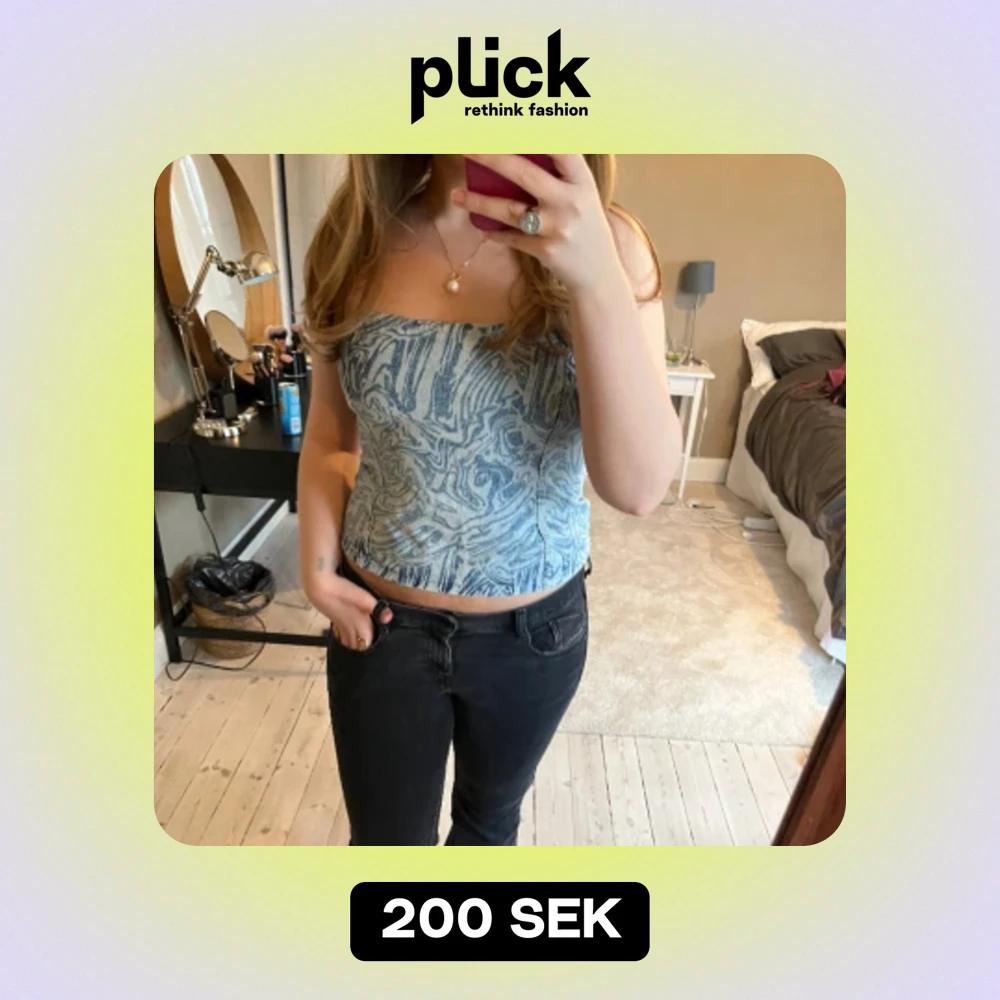 Supersnygg korsettopp i denimđ omsydd i ryggen för att passa M (syns pĂ„ sista bilden)