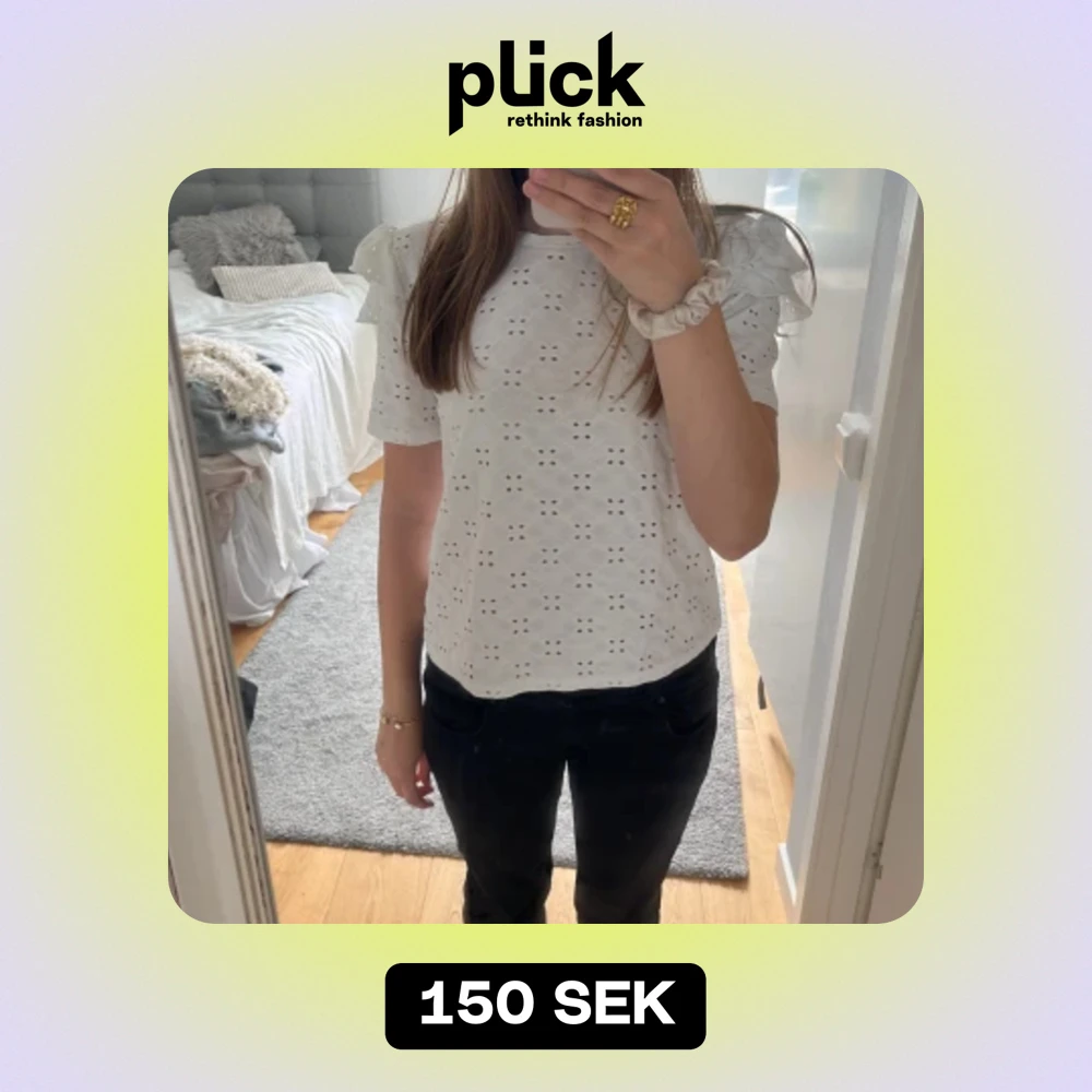 Säljer denna jättefina vita toppen med håliga broderier samt volangärmar! Toppen är från zara och är i storlek S💕 Den är använd fåtal gånger och är i superfint skick och säljs pågrund av att den inte riktigt är min stil. Passar perfekt till sommaren💕