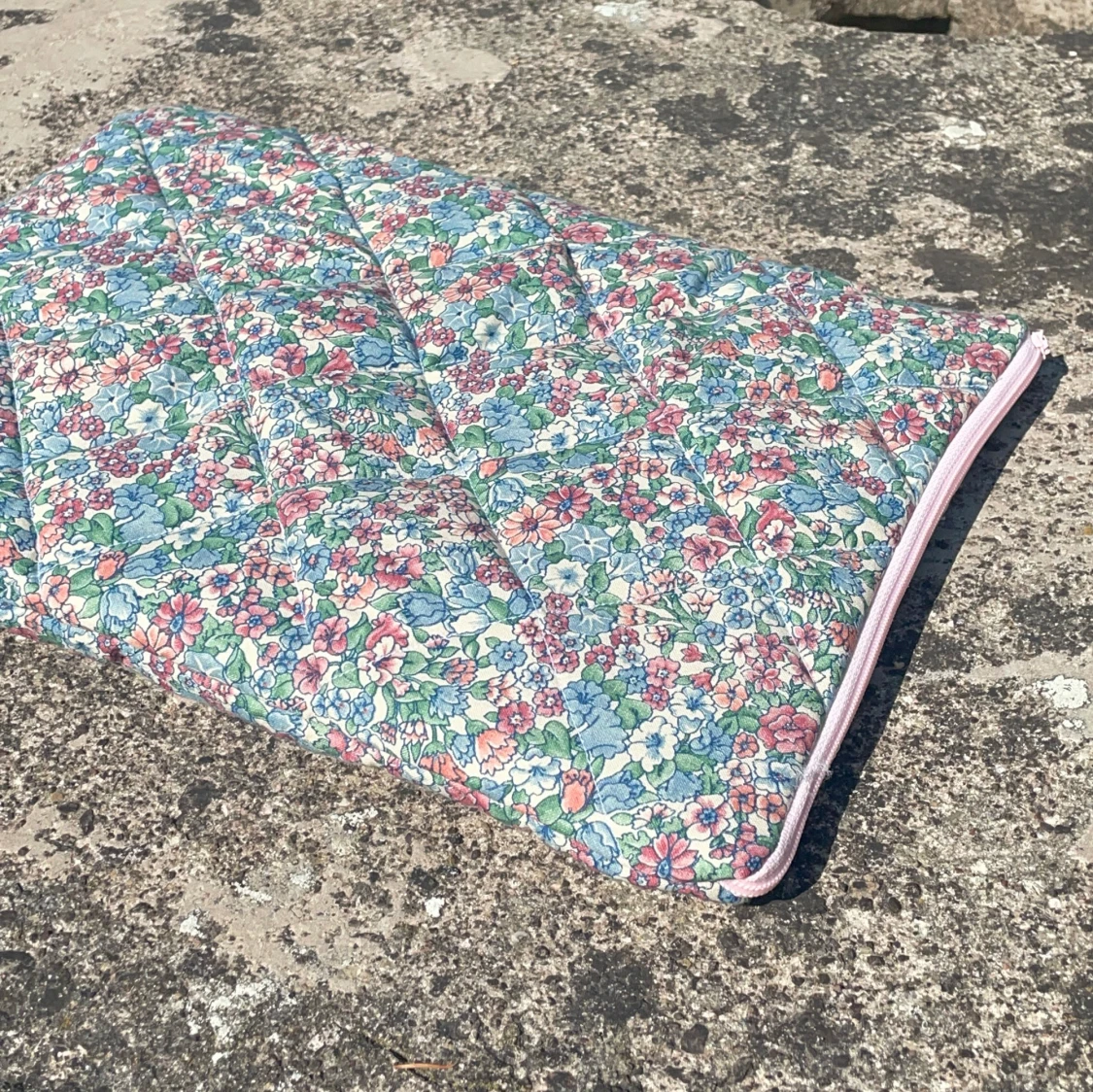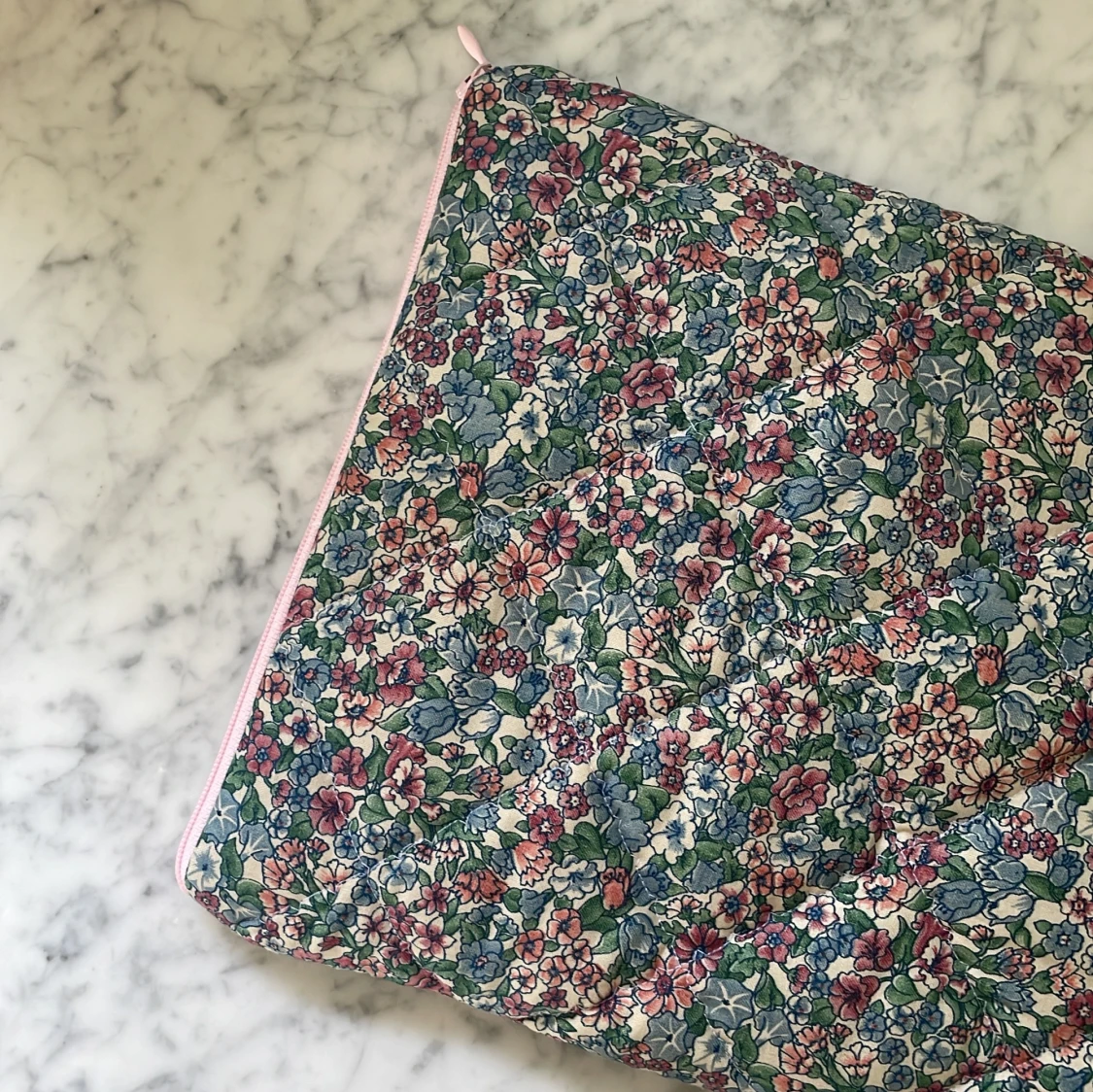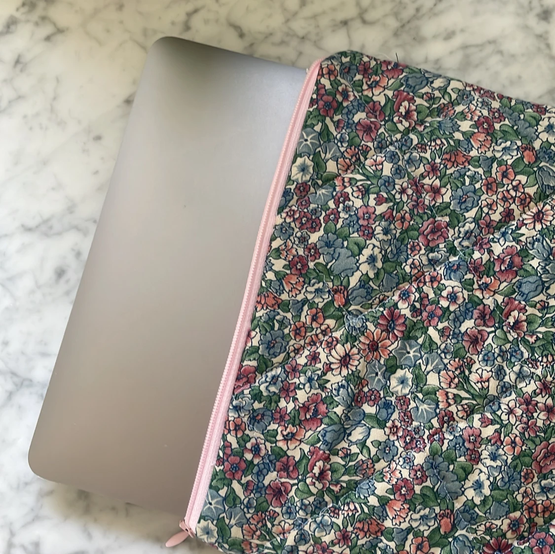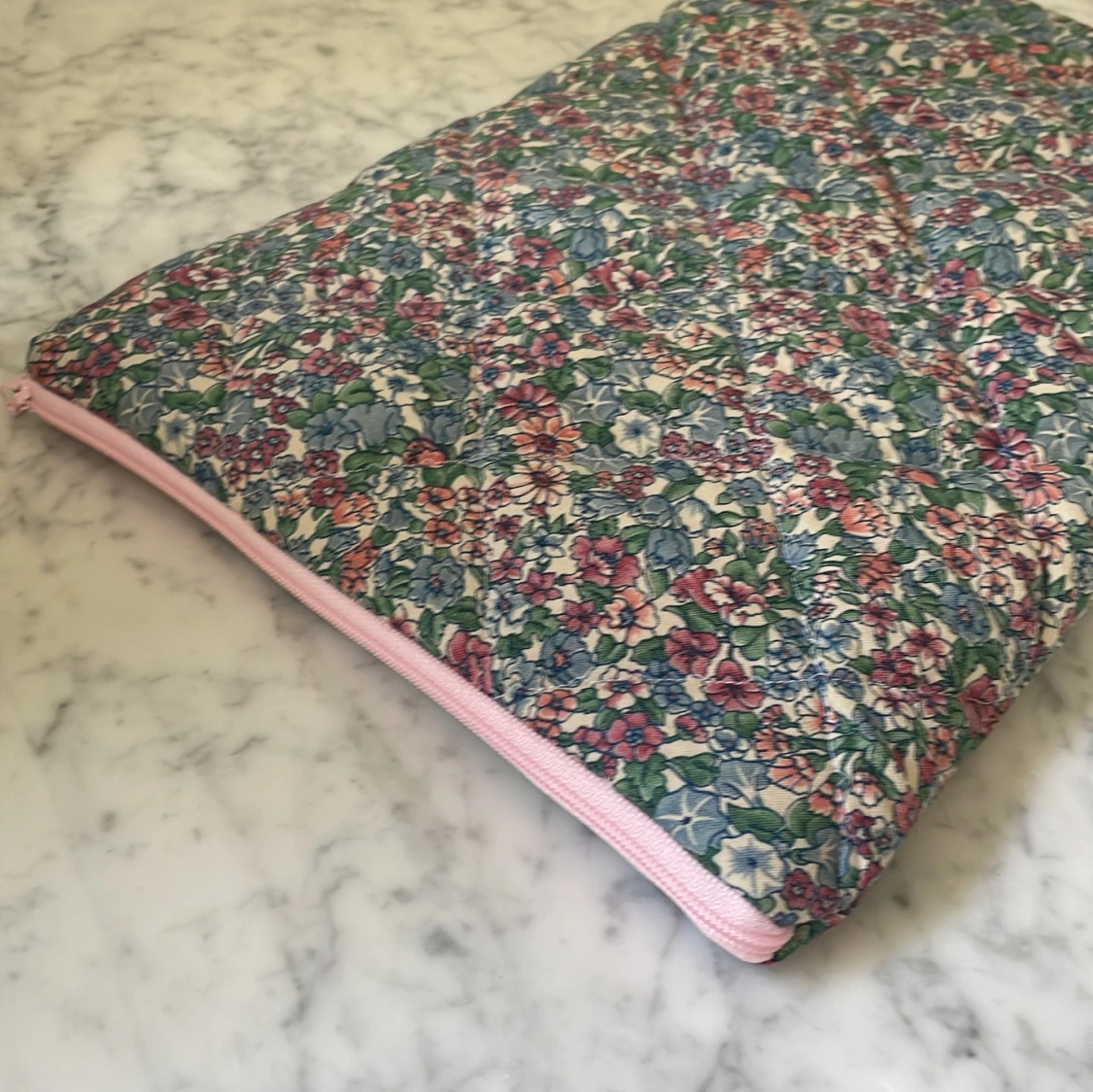Handsytt fodrat (quiltat) datorfodral. Passar en 13,3” dator eller mindre (tex MacBook Air mfl) skyddar och isolerar när det är kallt. Återvunna material, naturligtvis tvättade.