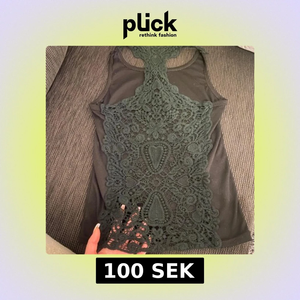 Snyggt svart linne med vackra spetsdetaljer på baksidan. Perfekt för en stilren och elegant look. Linnet är ärmlöst och har en unik design med spetsmönster som ger en extra touch. Finns inga lappar i tröjan men jag skulle uppskatta tröjan som en S.