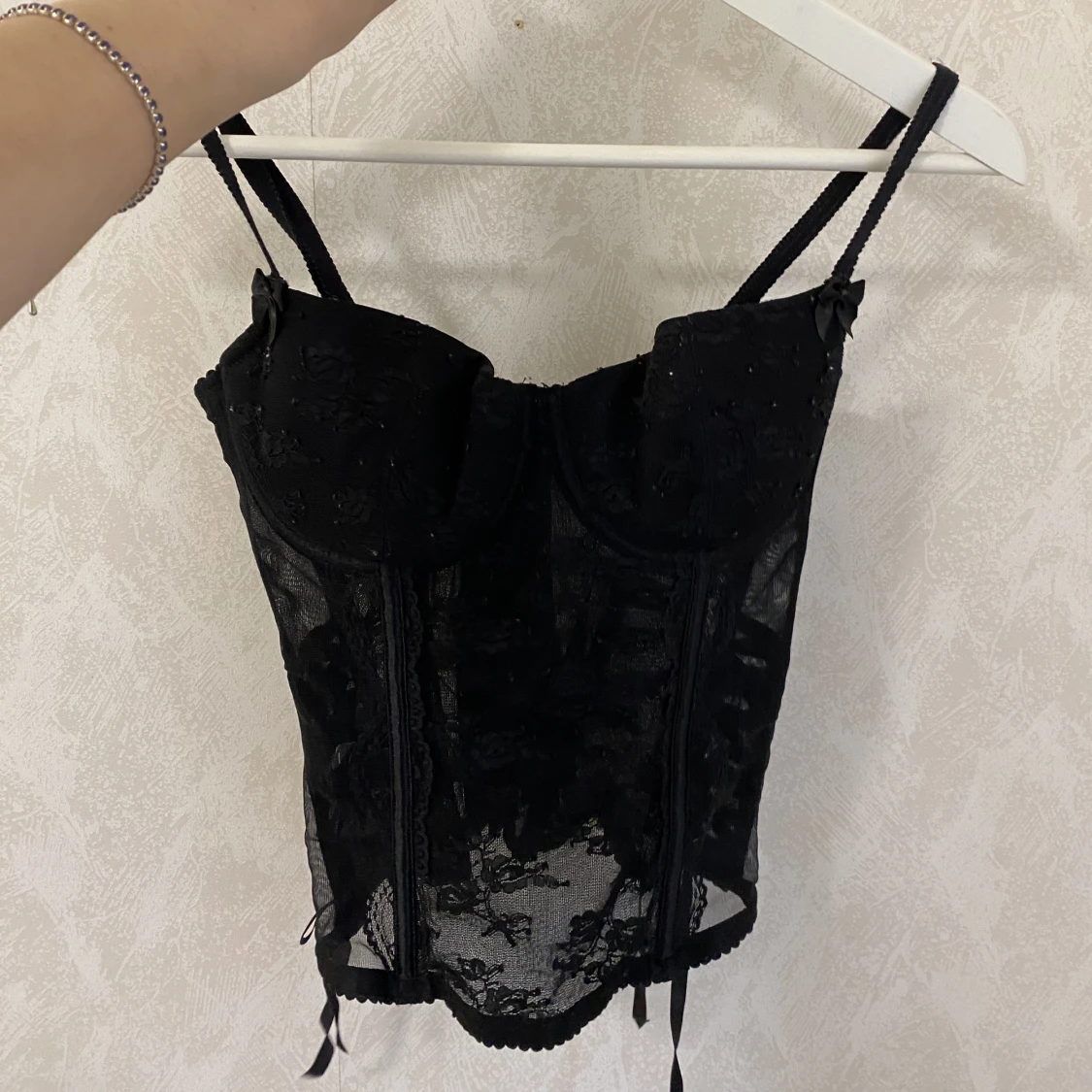 En svartkorsett topp, jätte fin och fina mönster, storlek 75B, från hm💞