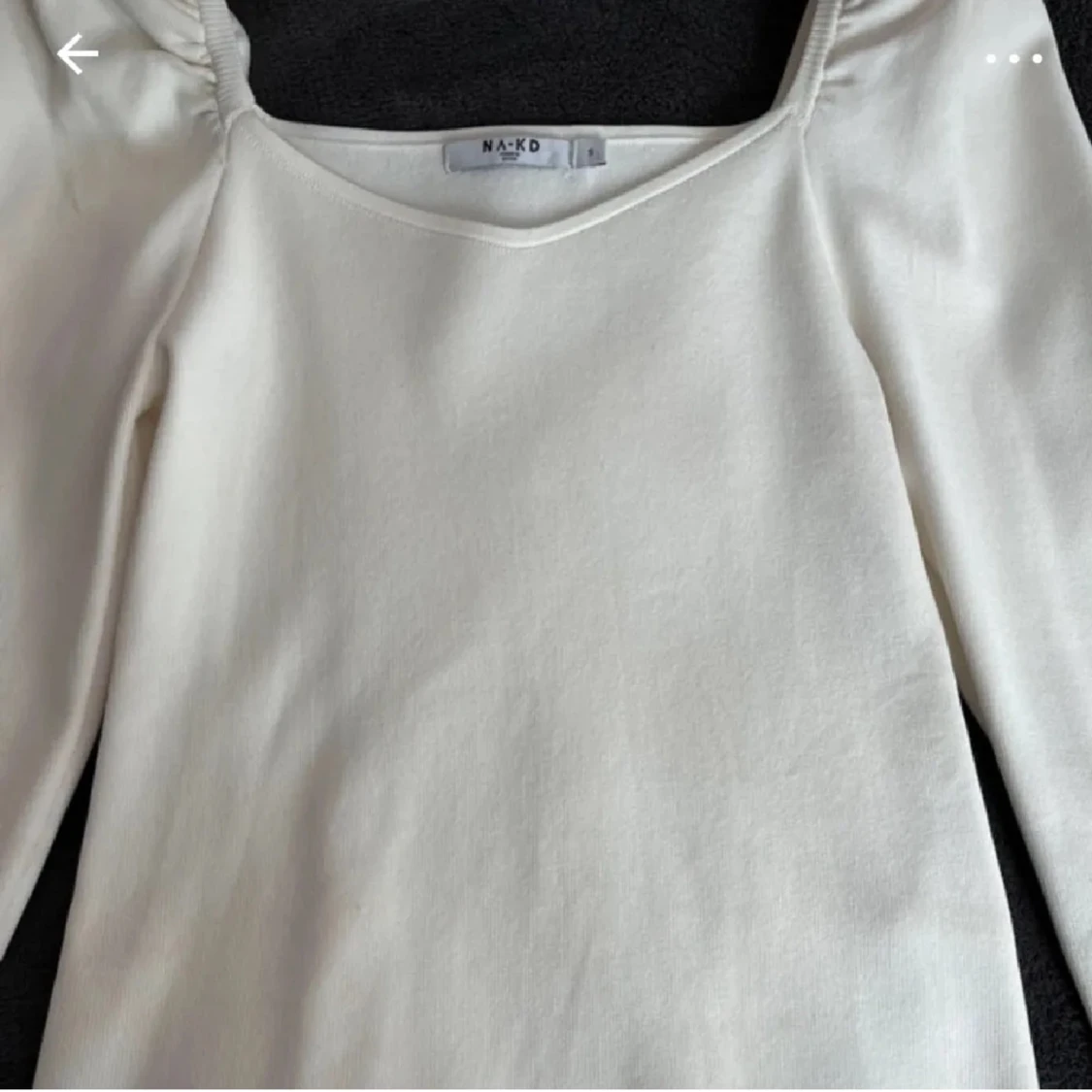 Säljer en stilren vit långärmad topp från NA-KD. Toppen har en v-ringad design och är tillverkad i ett mjukt material som ger en bekväm passform. Perfekt för både vardag och speciella tillfällen.