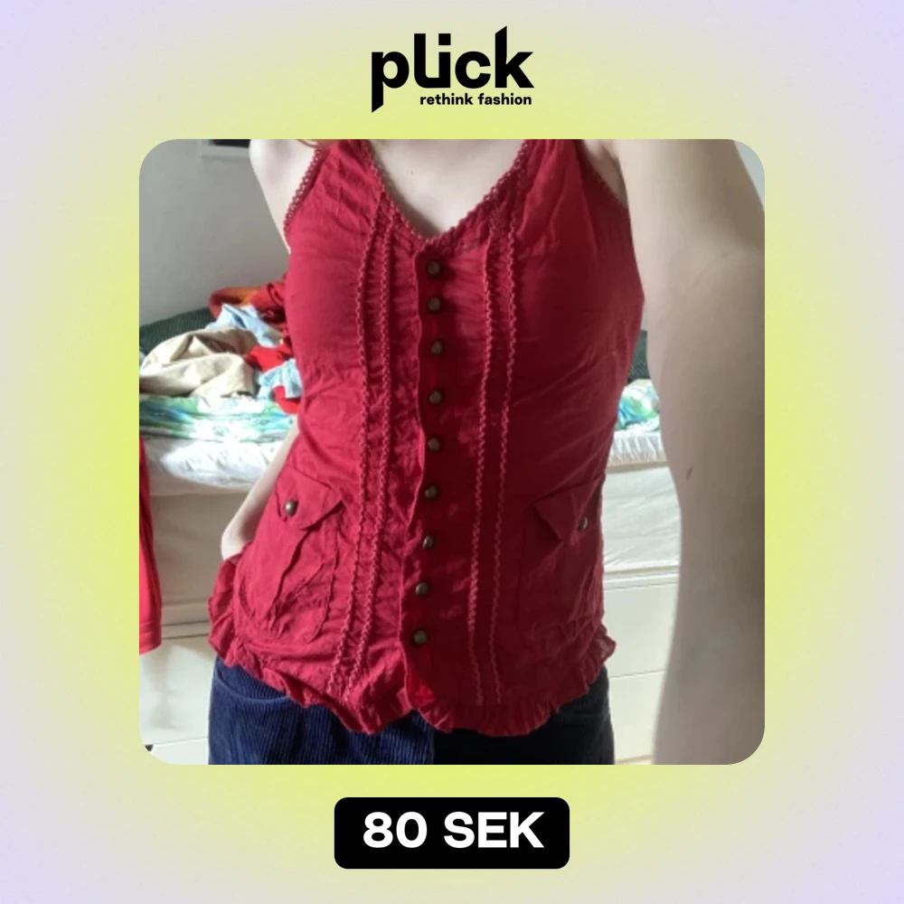 Rött linne med gulliga detaljer från only i storlek 36! har fin knytning i bak ❤️