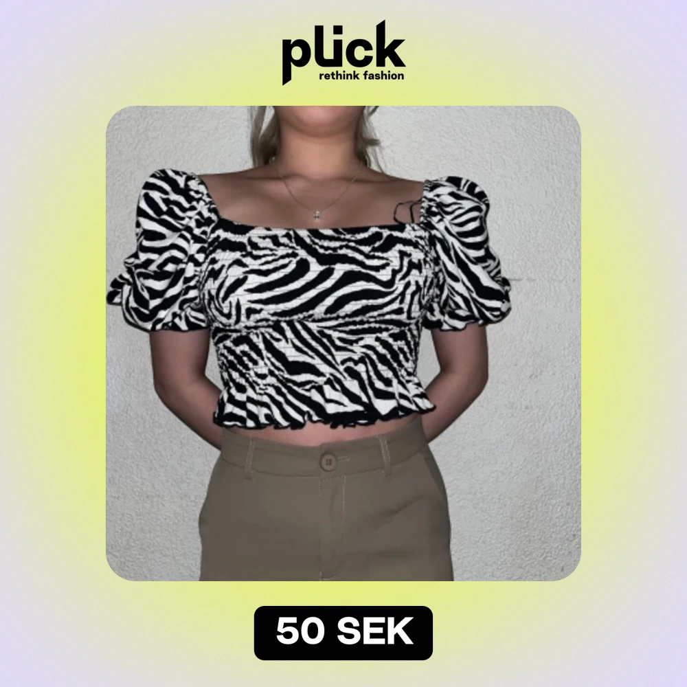 Denna topp från BikBok har zebra mönster och puffiga ärmar. I storlek S och endast använd en gång.