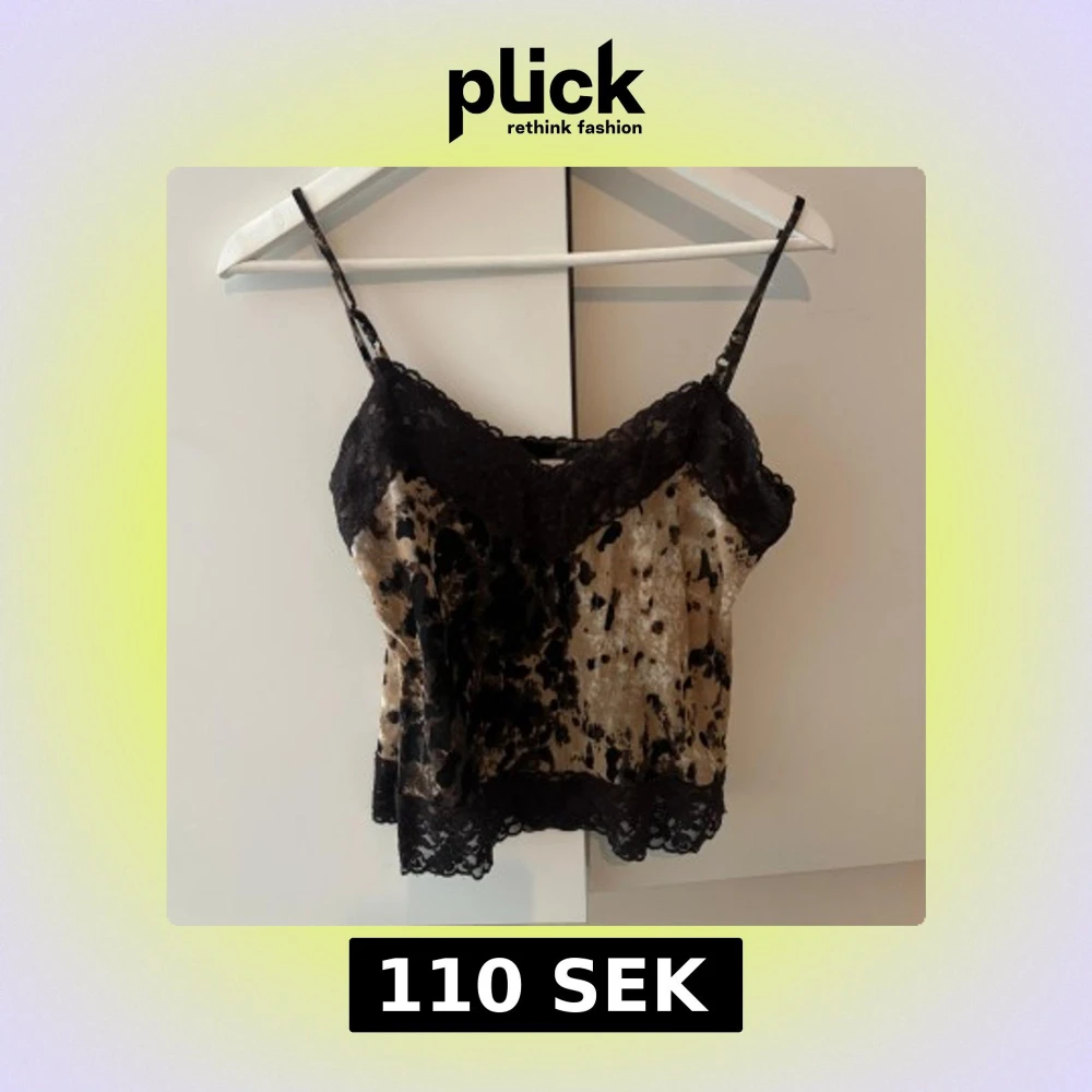 Snygg linne med smala axelband och spetsdetaljer. Mönstret är i svart och beige med en unik design. Perfekt för en trendig look.