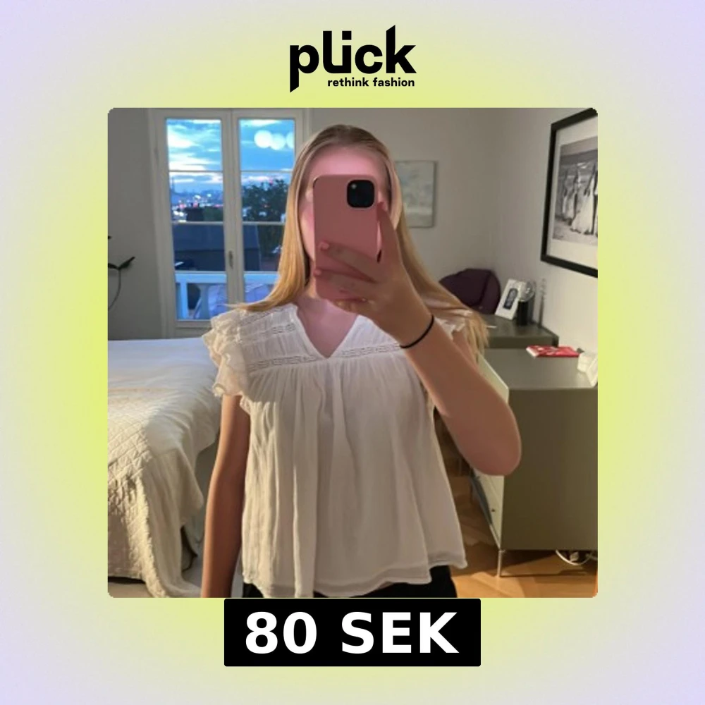 Säljer en vit luftig blus med volangärmar och v-ringning