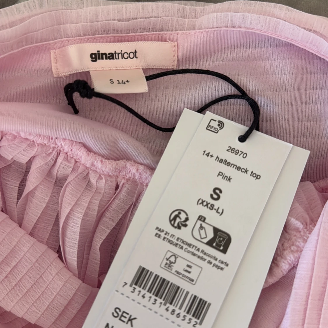 Supersöt ljusrosa halterneck topp från Gina Tricot. Helt ny med prislapp kvar. Slutsåld online.