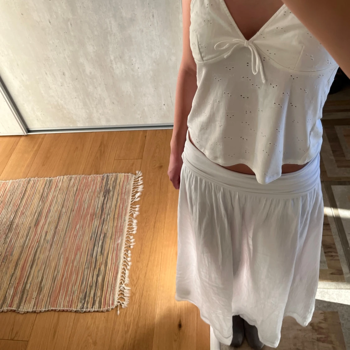 Vitt linne med mönster, detaljerade band, en Knut där framme och två där bak! Den har inte används så mycket. Väldigt bra skick!