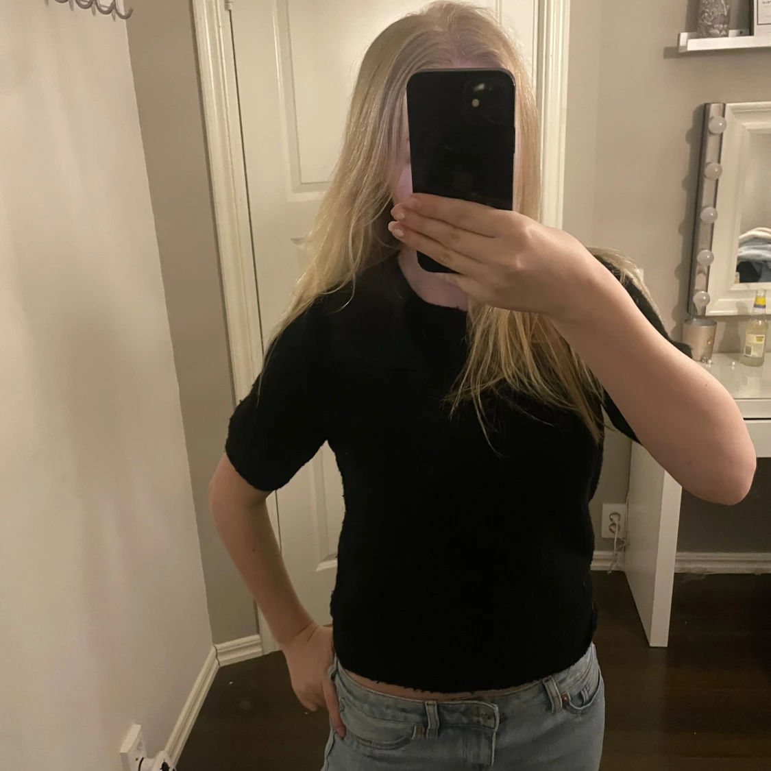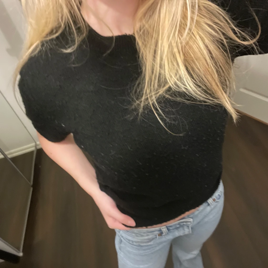 INTRESSEKOLL!! Säljer en stilren svart stickad kortärmad topp. 🩷🩷