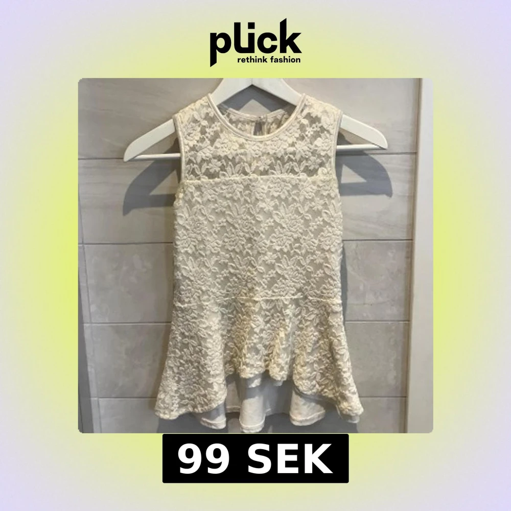 Säljer en elegant vit spetsblus med ärmlös design och vacker spetsdetalj. Blusen har en lätt utsvängd nederdel och en knapp i nacken för enkel påklädning. Perfekt för en stilren look. Nästan aldrig använd.