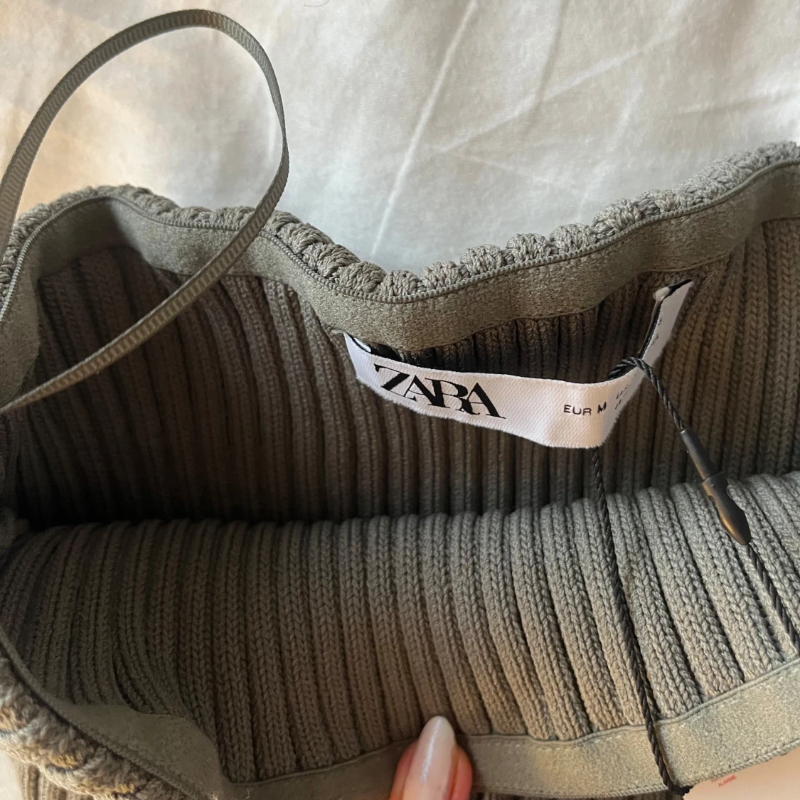 Säljer en olivgrön ribbad tubtopp från Zara. Den är oanvänd och har lappen kvar🩷