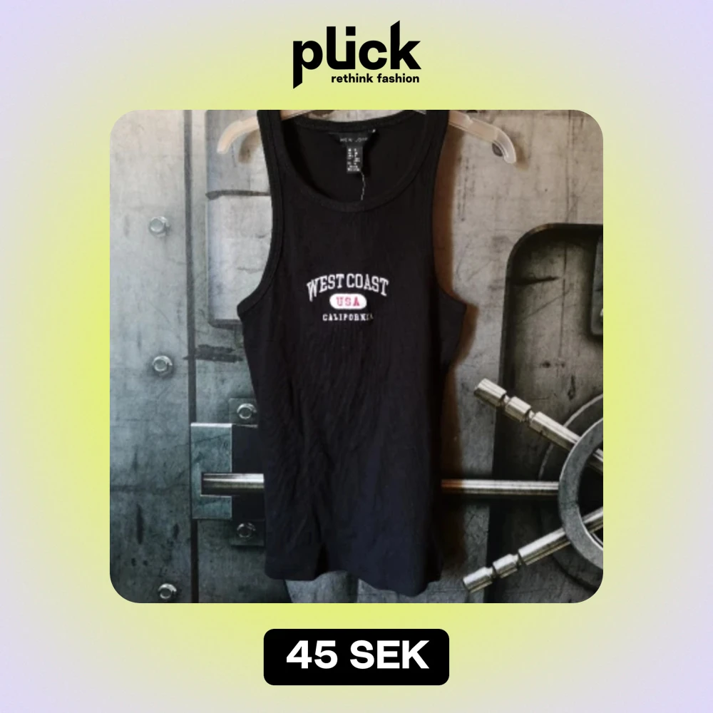 Svart linne i ribbat tyg med broderat tryck. Nytt/oanvänt med lapp kvar! Storlek 36, men jag skulle säga att det är något litet i storlek.