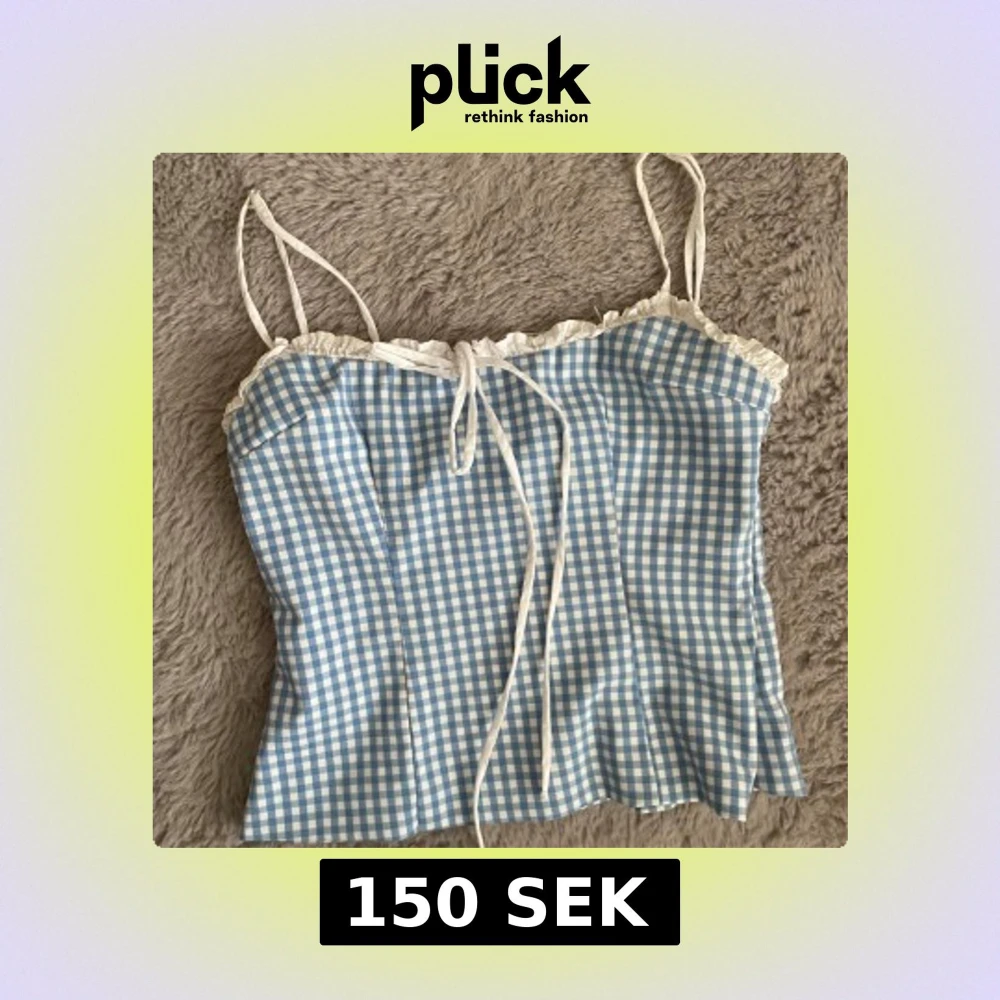 Supersöt linnetopp med blåvitt rutigt mönster, smala axelband och volangkant upptill. Toppen har en söt knytning framtill och är perfekt för varma dagar. Lätt och luftig känsla, passar till jeans eller kjol. Från Zara