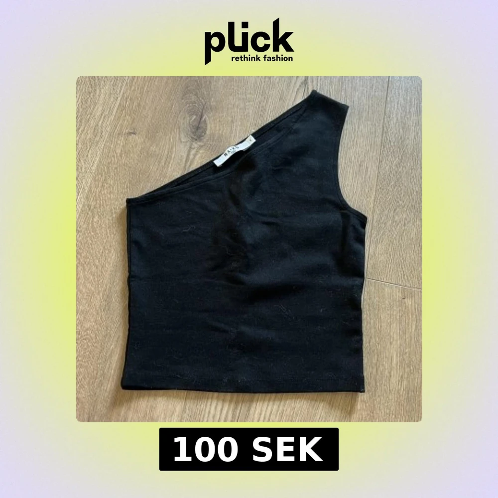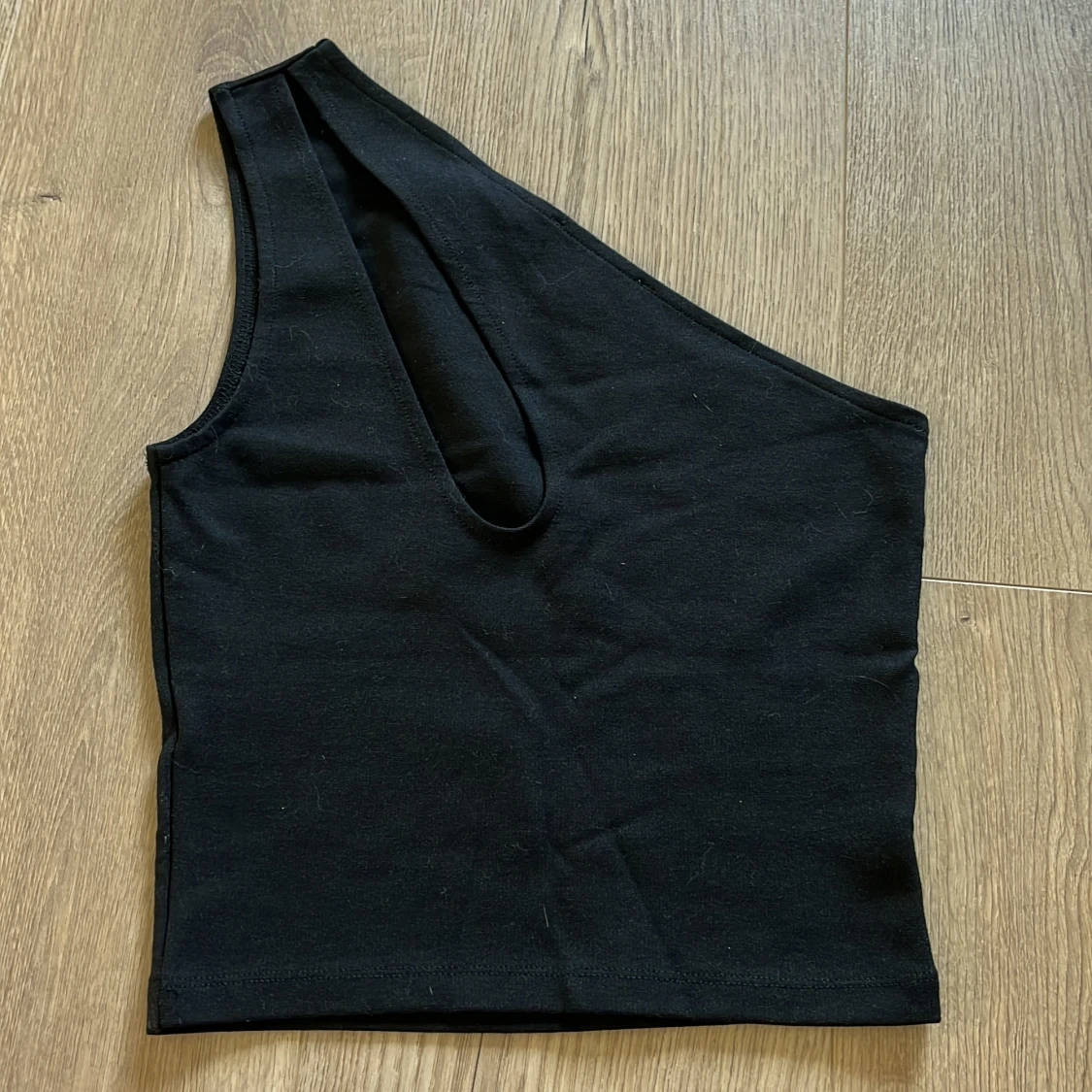 Säljer denna festliga svarta oneshoulder topp från NA-KD. Toppen har en asymmetrisk skärning och en snygg cut-out detalj på baksidan.