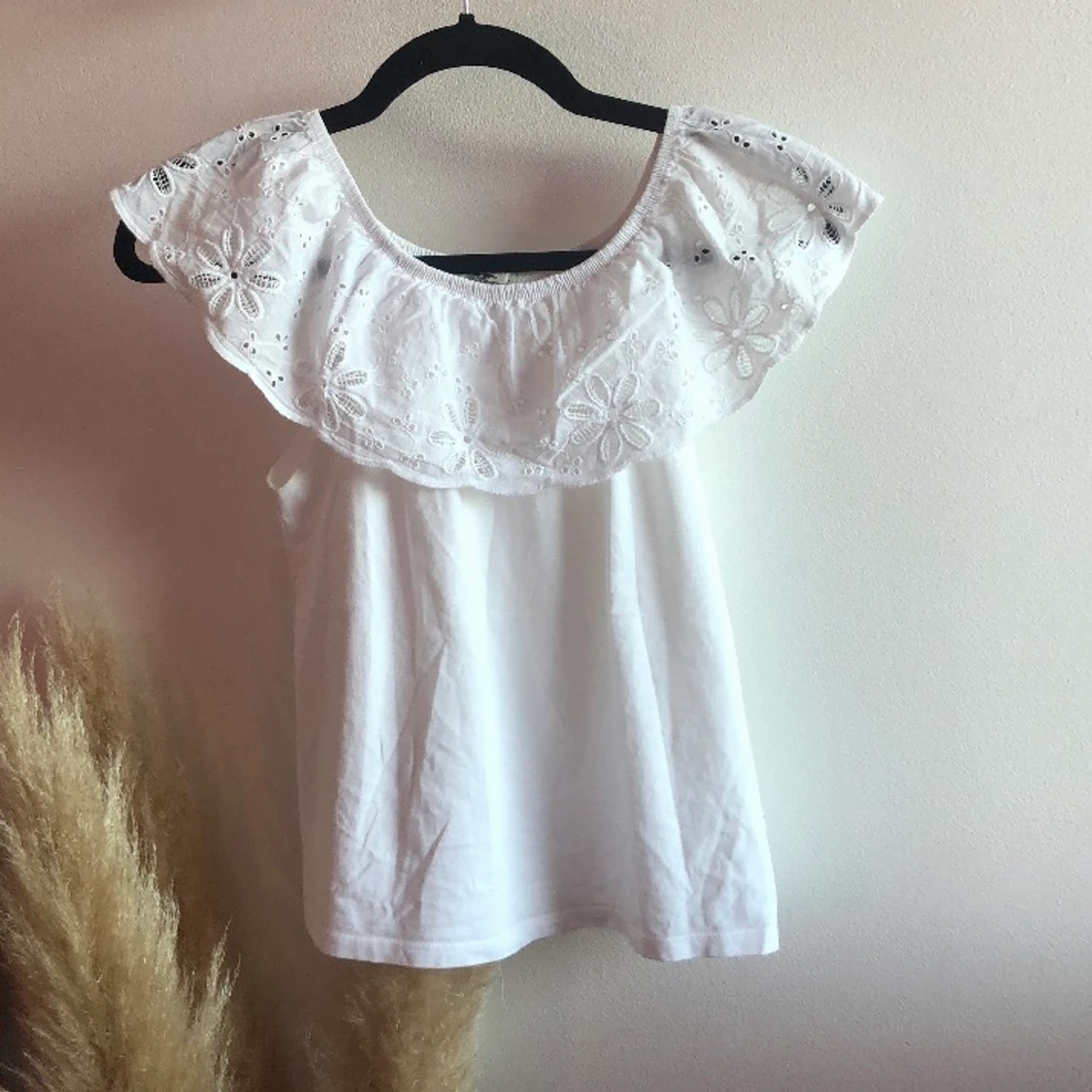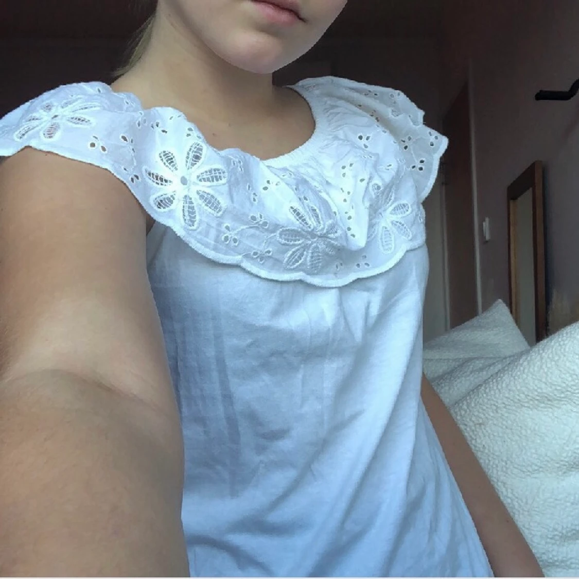 Vit topp med volang detalj vid halsen