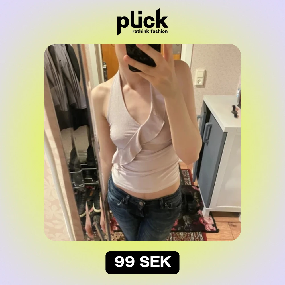Jättesöt rosa halterneck topp med volanger på framsidan. Jättesöt rosa färg som är en aning skimrig. Skönt och stretchigt material (polyester).