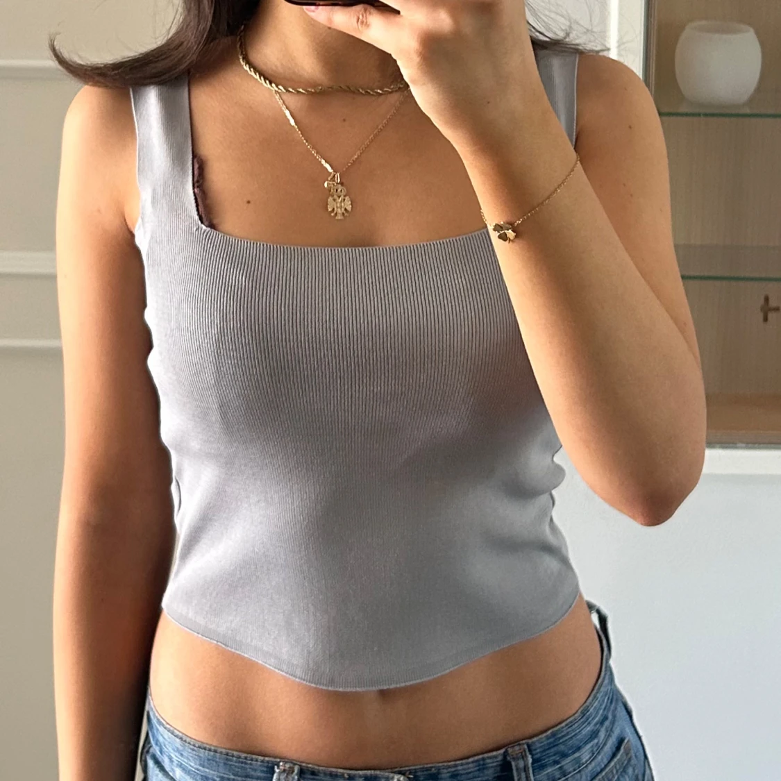 Jättefint croppat grått linne, lite tjockare material, aldrig använt, nypris 350kr