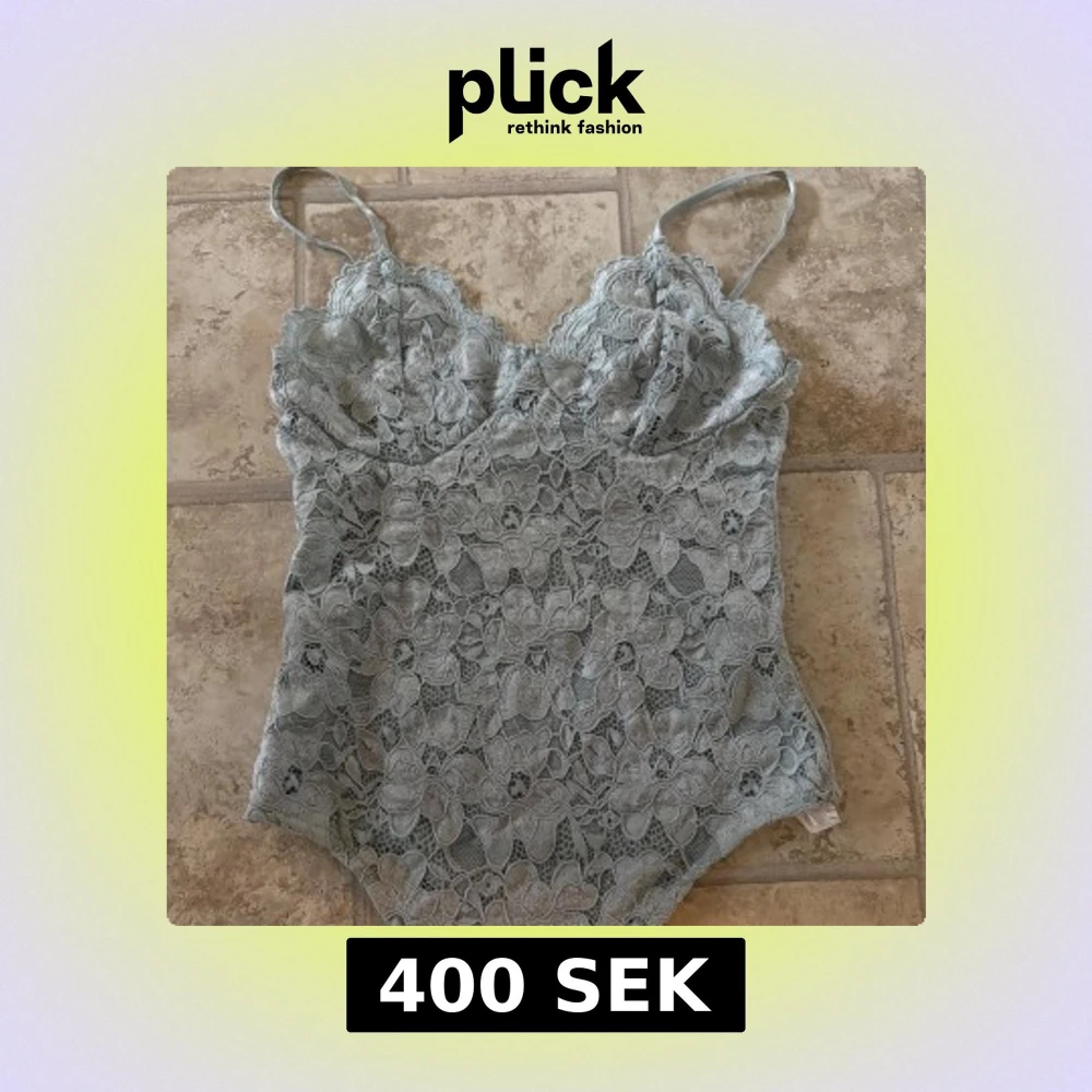 Säljer en ljusblå body i spets med tunna axelband och blommönster. Perfekt att styla under en kavaj eller till jeans för en trendig look. Bodyn har en feminin och romantisk känsla tack vare spetsen.