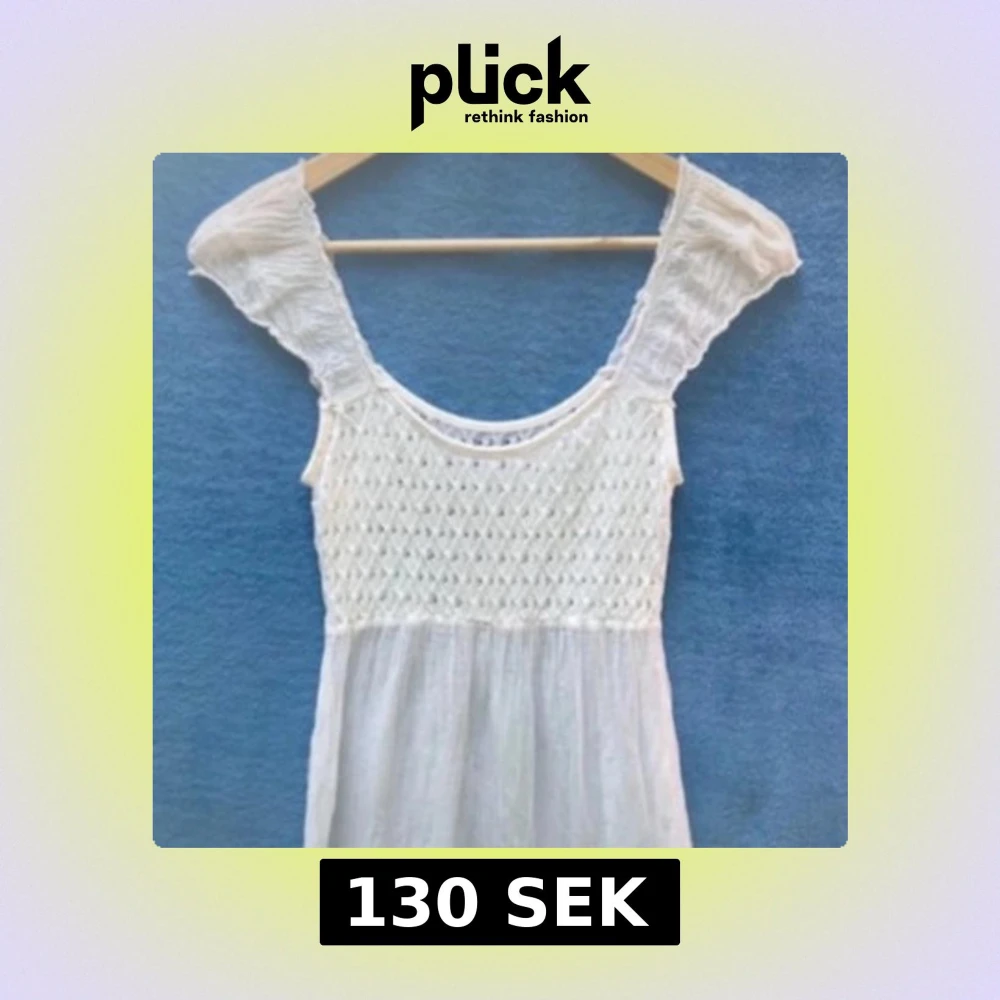 Supersöt vit topp med broderad överdel och volangkant nertill. Klänningen har små ärmar med volang och en luftig kjol i tunt tyg. Perfekt för varma dagar och ger en romantisk vibe.
