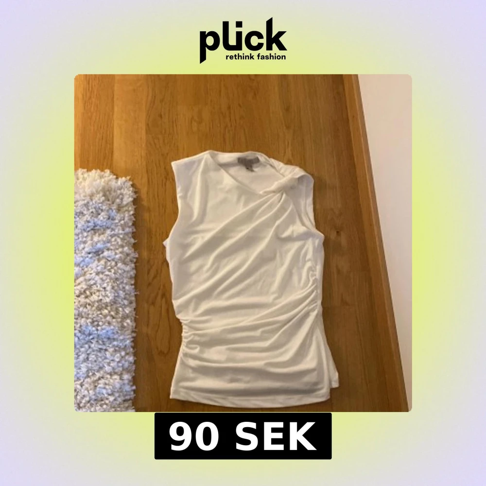 Säljer en vit ärmlös topp med ett snurrat ”axelband”. Storlek xs/ xxs