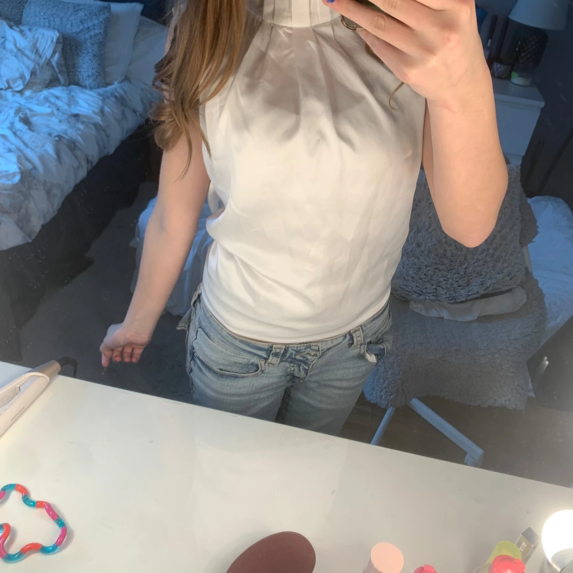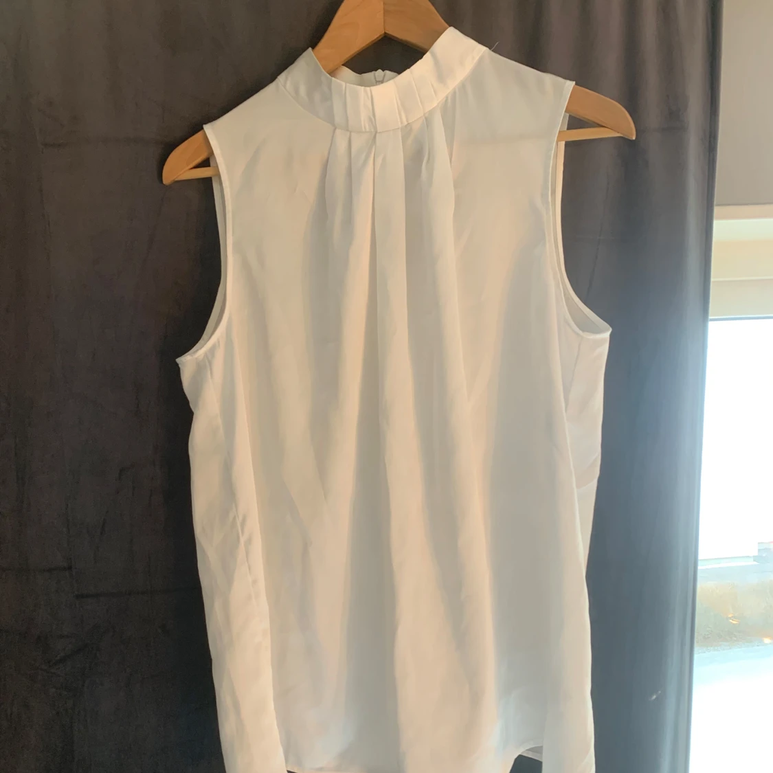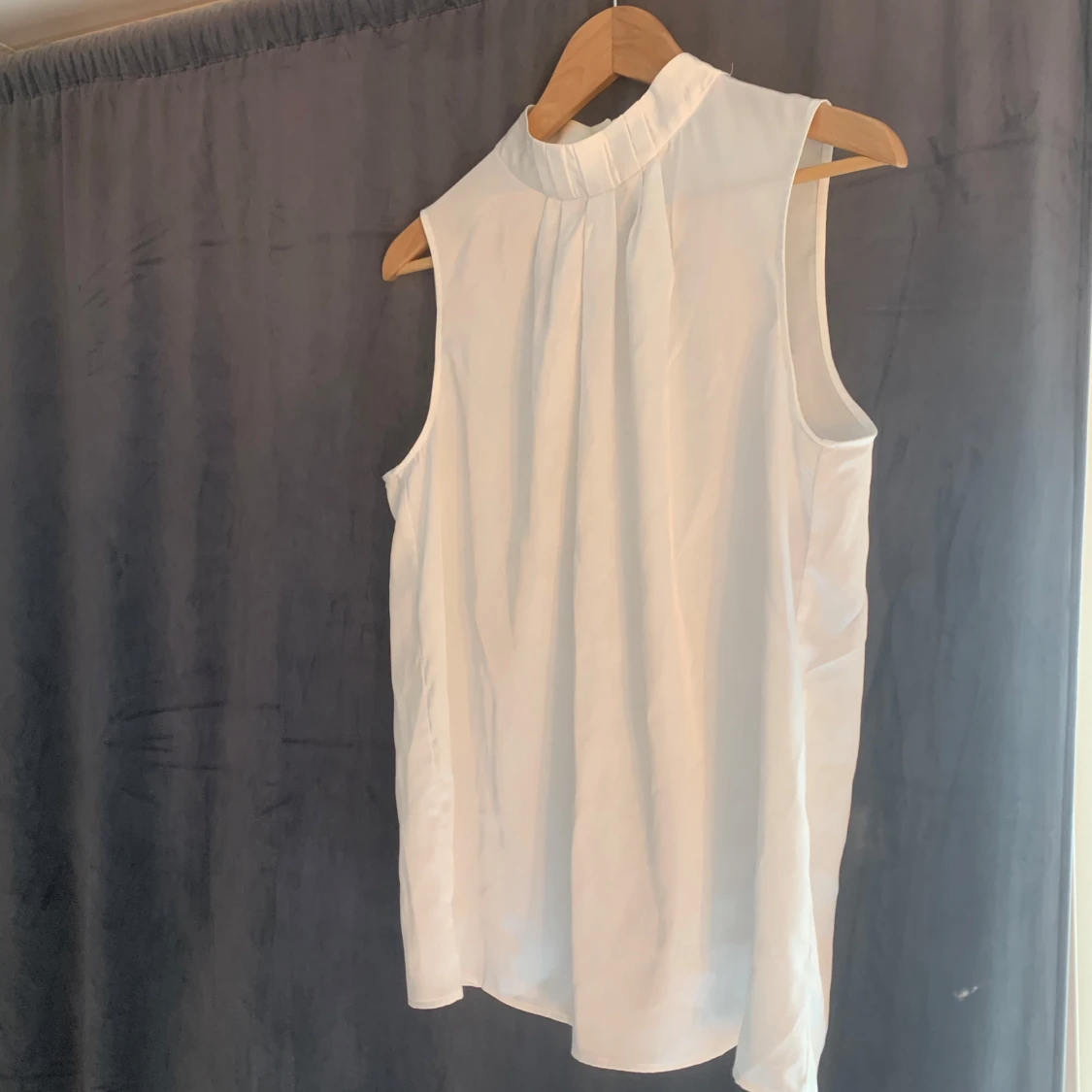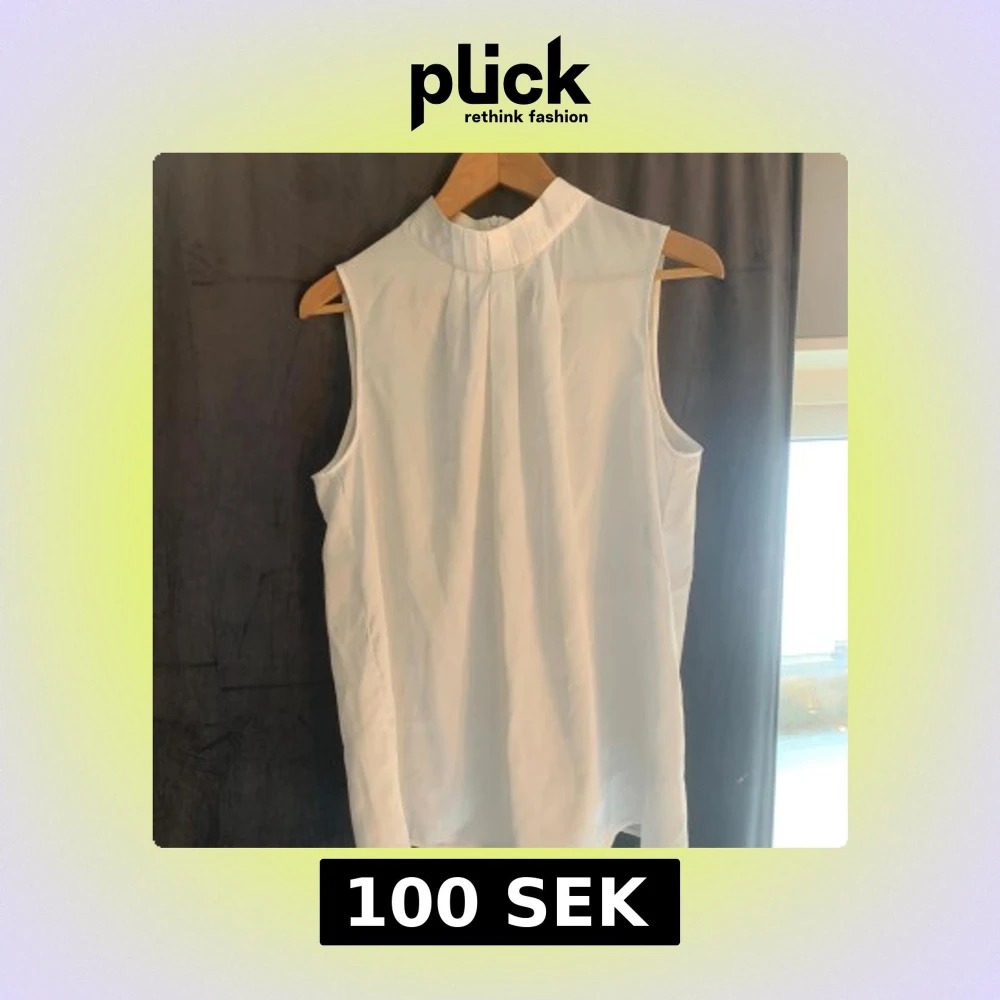 Säljer en stilren vit ärmlös blus från Stockh LM. Blusen har en hög krage och ett elegant fall. Perfekt för en chic och minimalistisk look. Passar bra till både jeans och kjol.