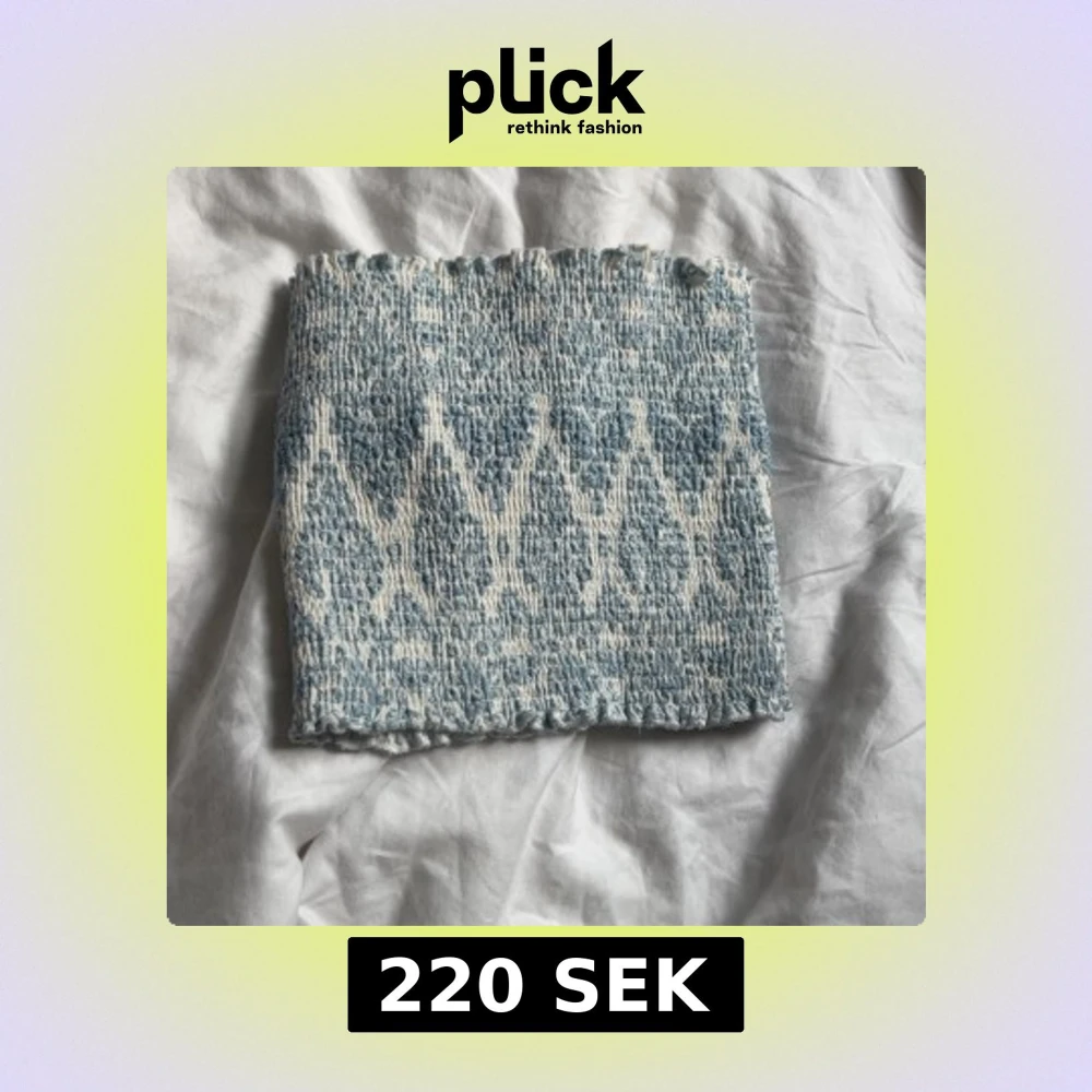 Supersöt bandeau tubtopp i blått och vitt med ett vävt, nästan boho-inspirerat mönster. Toppen är elastisk och har en smockad struktur som gör att den sitter på plats. Perfekt till sommaren och lätt att matcha med jeans eller kjol.