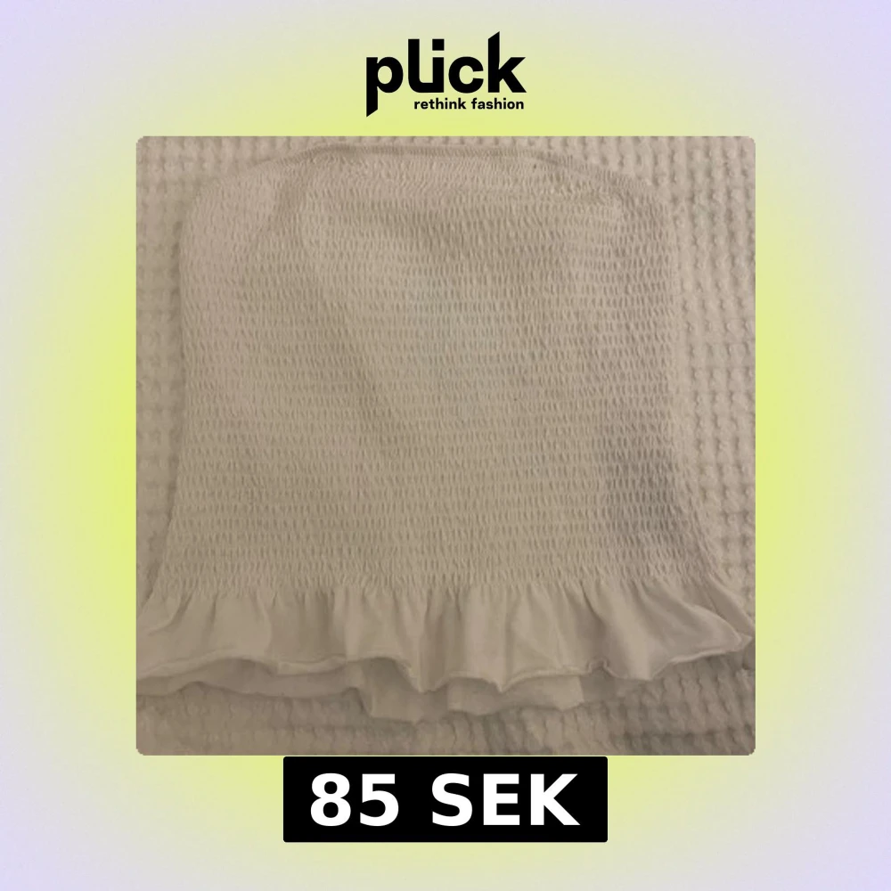 Supersöt vit bandeau tubtopp från Vila med smockad struktur och volangkant nertill. Toppen är ärmlös och har en mjuk, stretchig känsla som sitter skönt på kroppen. Perfekt med en snygg kofta över💕