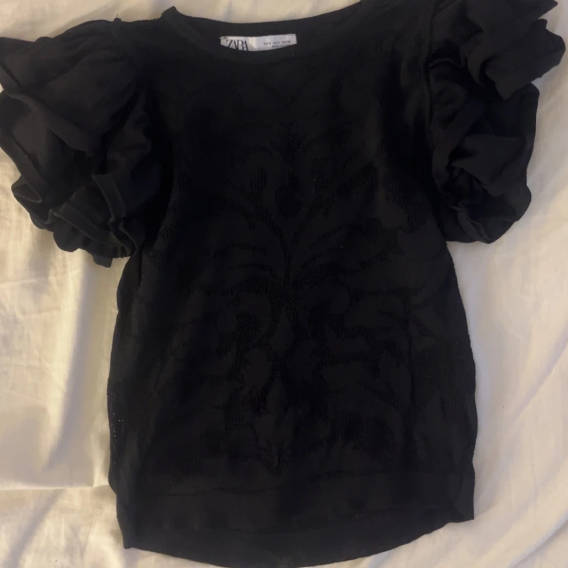 Säljer denna fina Zara topp då den inte kommer till användning, jätte fin till fest eller finare tillfällen💕den har en liten defekt (se på sid.5) hör av dig för fler frågor eller funderingar💕💕