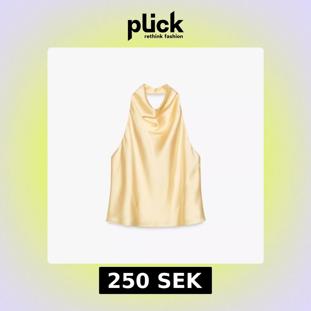 Snygg gul satintopp med halterneck som är köpt ifrån Zara🩷Använt ett fåtal gånger så den är i ett mycket bra skick!! Toppen är i modellen ”Glättad topp med halterneck”😊