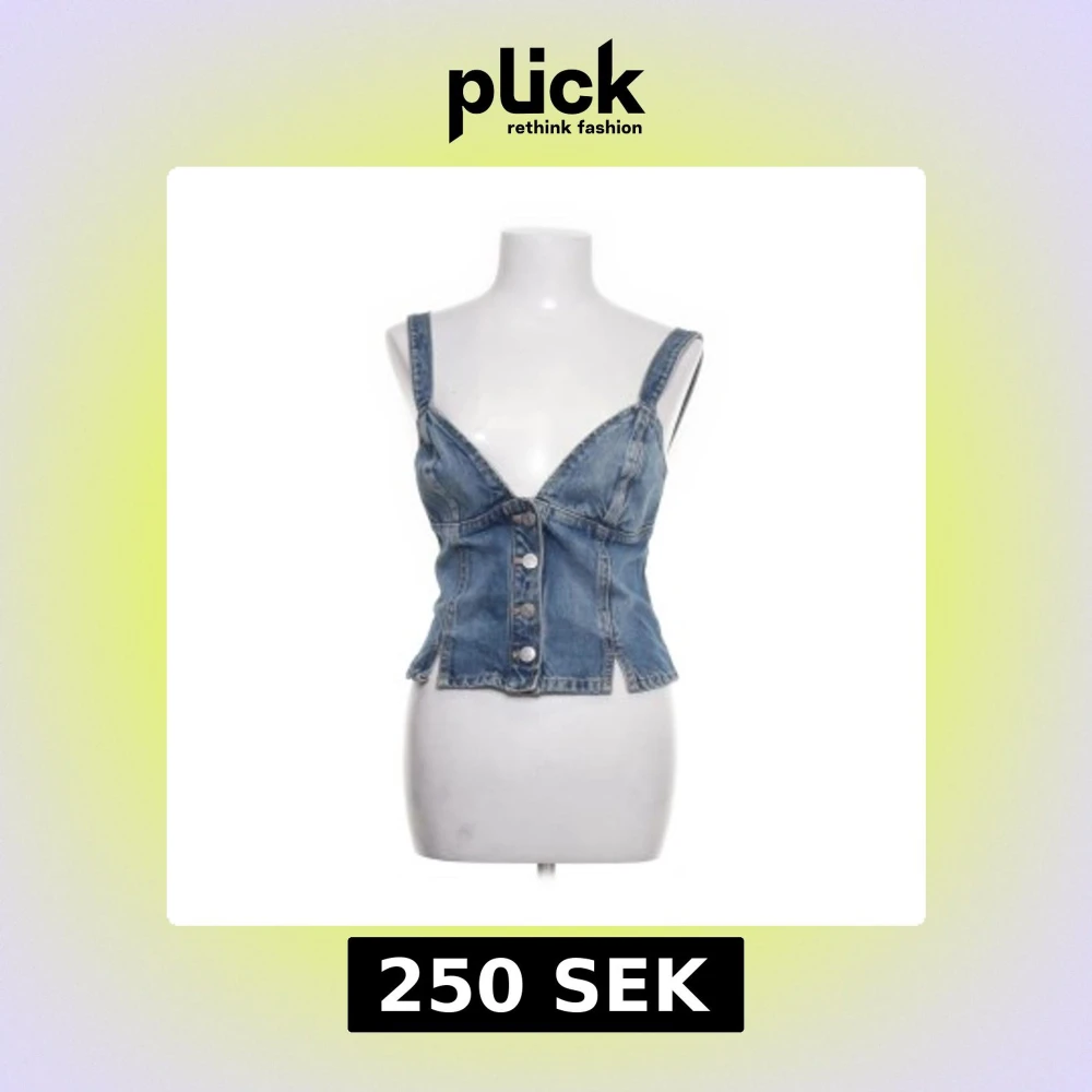 Fin, figurnära topp i denim från Zara. Djup V- ringning, smala axelband och jeansknappar framtill (som går att öppna). Ryggen har en elastisk ribb-detalj som gör att den sitter bekvämt. Köpt via Sellpy men blev tyvärr för stor. Inga defekter, i fint skick. Pris kan diskuteras!
