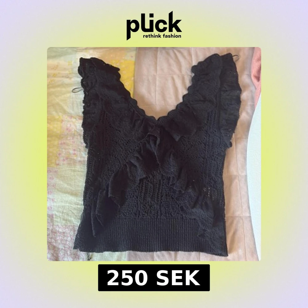 Svart blus från Zara i medium med snygga spetsdetaljer och volanger framtill. Blusen har v-ringad hals och är ärmlös, vilket ger en cool och feminin vibe. Materialet är spets och ribbad nederkant för extra stilpoäng. Perfekt för dig som gillar statement-plagg. För mer frågor är det bara att dma💕
